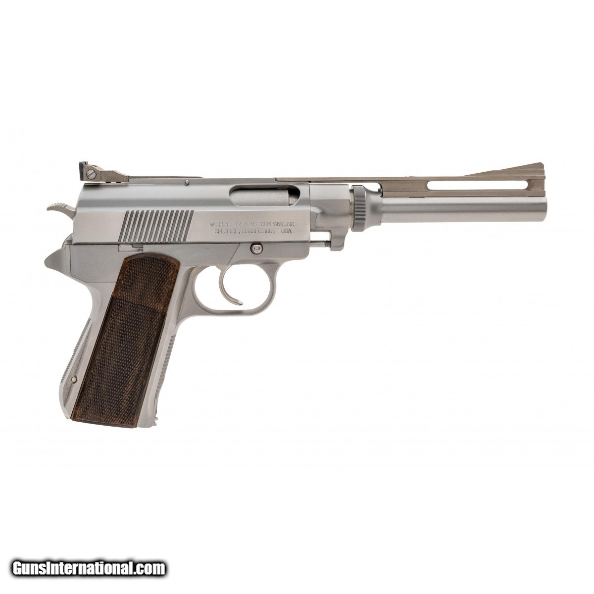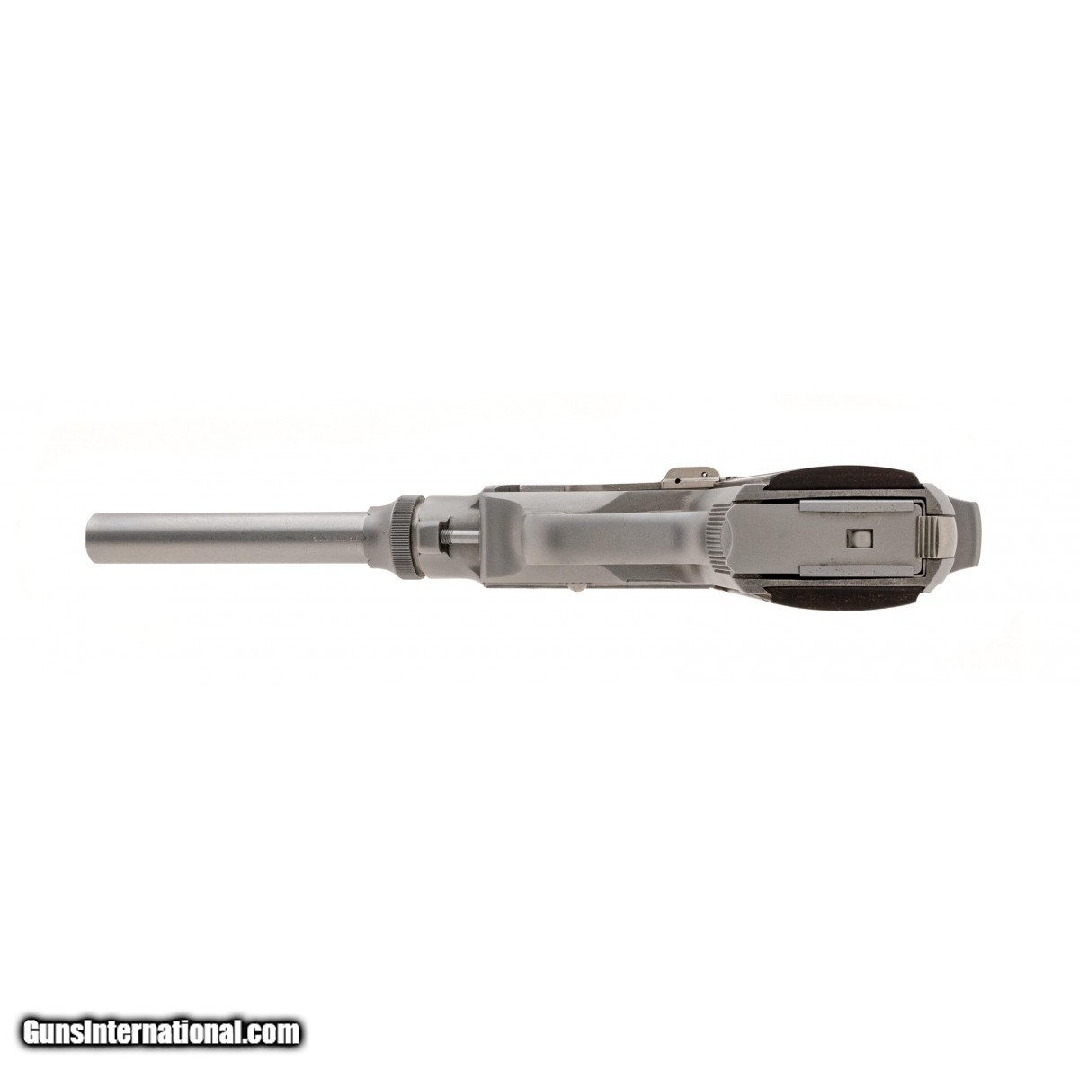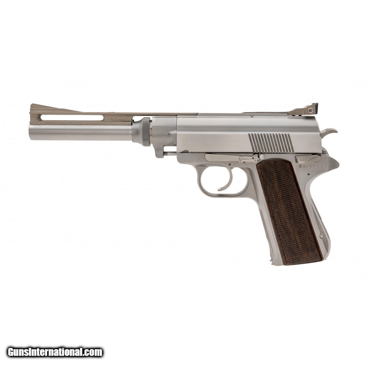 SN: 09-1146. Manufactured circa 1980's, .45 Winchester Magnum with 6"" barrel, Bore is excellent. Magnum stainless steel hunting pistol with vent rib barrel, target sights and checkered wood grips. Overall excellent.