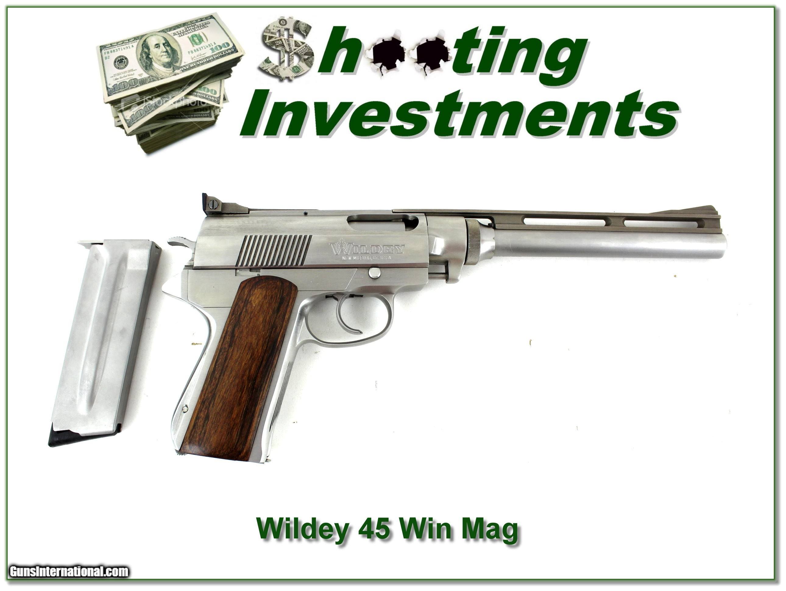 Wildey pistol stainless 10in in 45 Winchester Magnum 3 mags