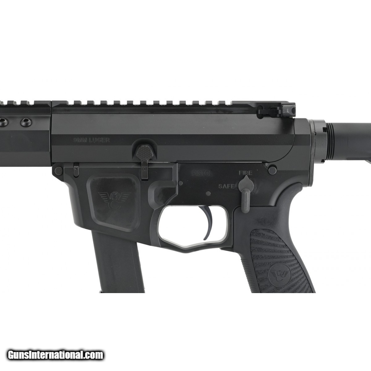 Wilson Combat AR9G 9mm caliber pistol. Wilson Combat AR pistol with 11" barrel, chambered in 9mm with enhanced trigger, M-Lok handguard, Ambi charging handle and SB Tactical pistol brace. Comes with soft case and one magazine.
