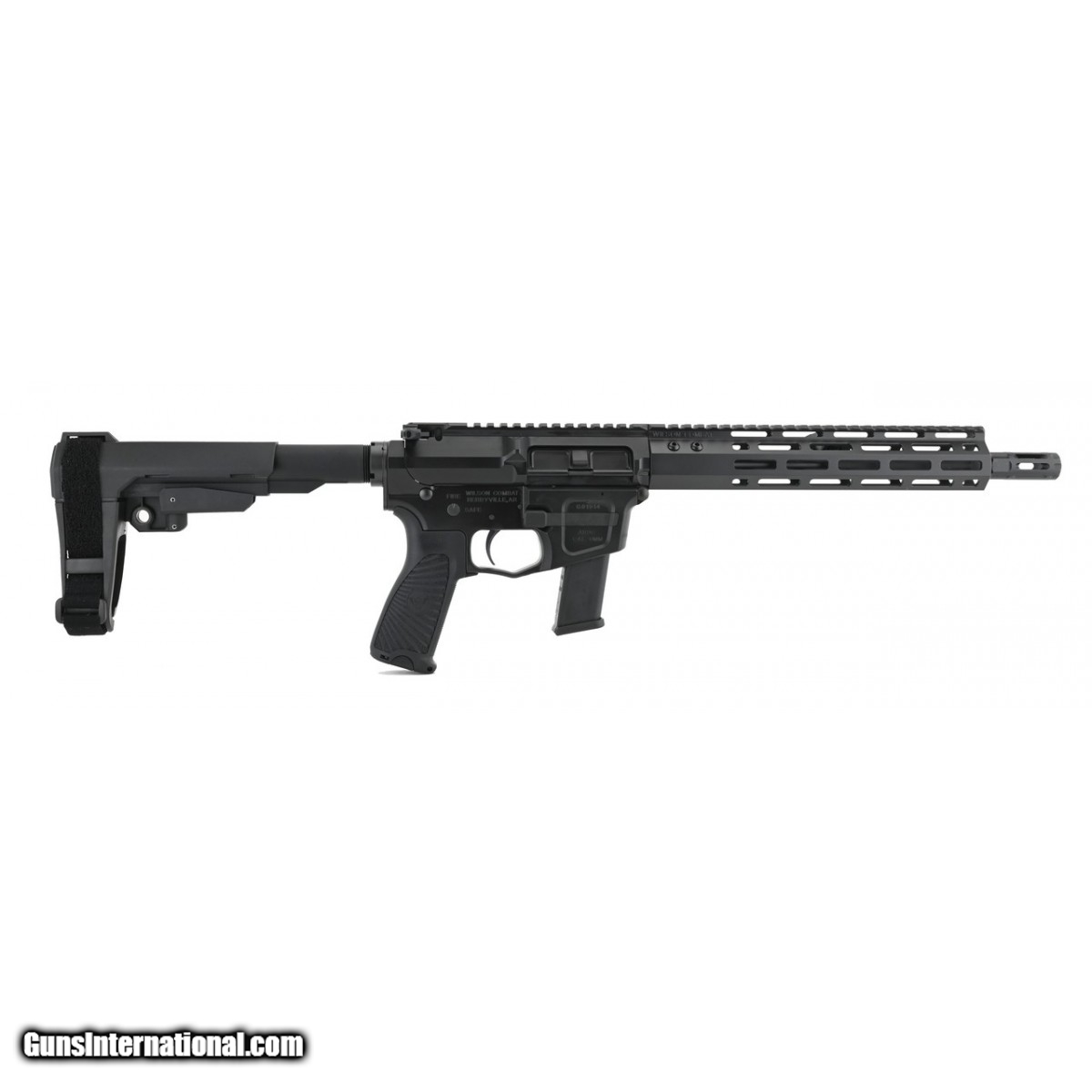 Description: " Wilson Combat AR9G 9mm caliber pistol. Wilson Combat AR pistol with 11" barrel, chambered in 9mm with enhanced trigger, M-Lok handguard, Ambi charging handle and SB Tactical pistol brace. Comes with soft case and one magazine.