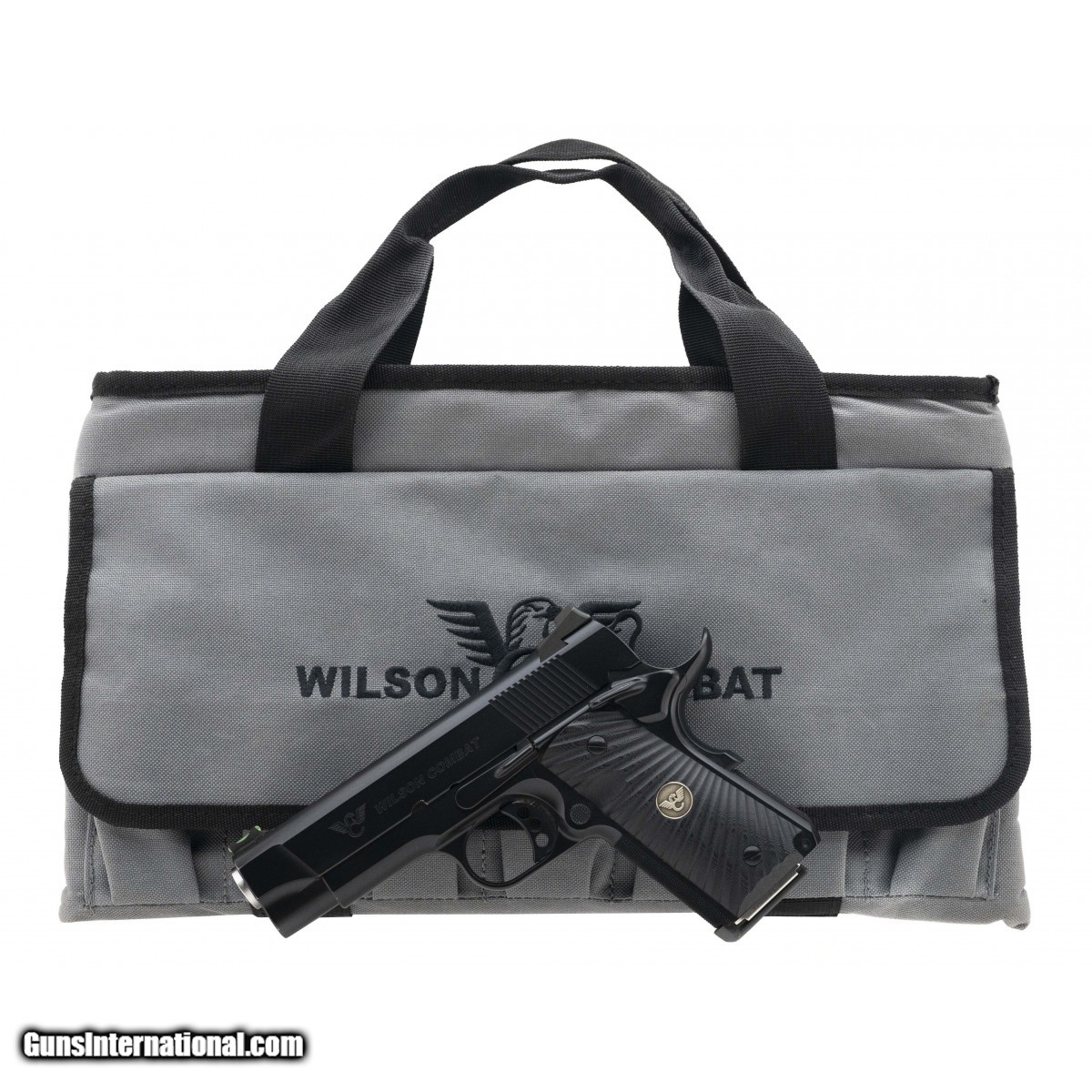 SN: WCT36831. Modern production, .45ACP with a 4"" barrel. Premium compact 1911. ""Bill Wilson"" carry model with fiber optic front sight, extended beavertail, Wilson sunburst grips. Overall excellent condition. Comes with Wilson combat range bag and extra magazine.