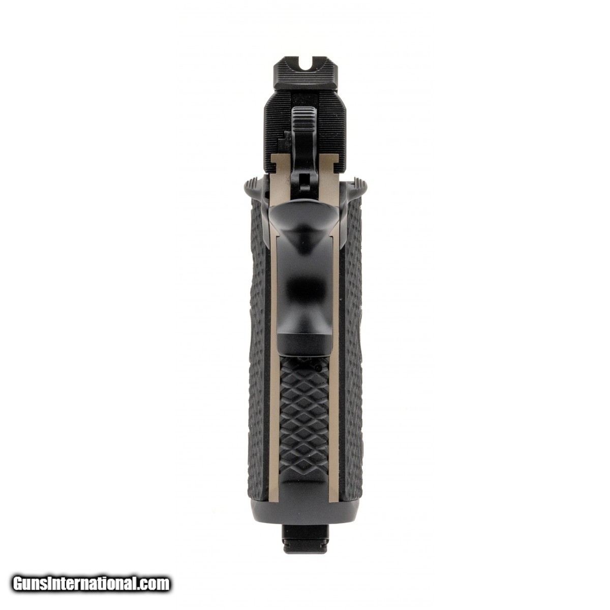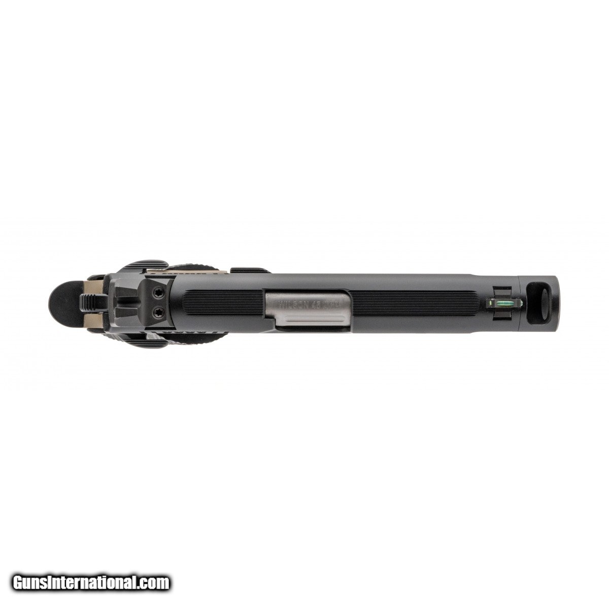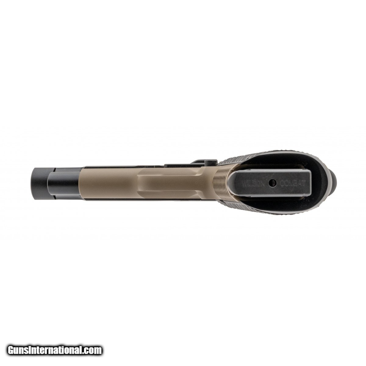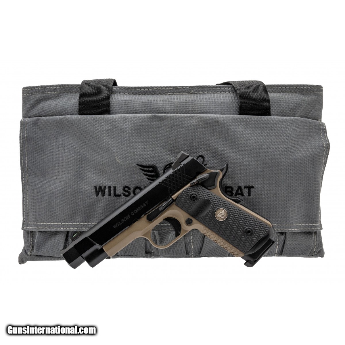 Description: " SN:WC18087. Modern production, .45ACP with a 4"" barrel. Bore is in excellent condition. Compact two-tone handgun with Black G10 grips, match grade compensated barrel, battlesights with fiber optic front sight and ambidextrous thumb safety. Overall condition is excellent. Comes with Wilson bag. SOLD |