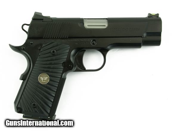 Description: Wilson Ultralight Carry 9mm caliber pistol. 3 ½” Lightweight model with fluted barrel. Excellent condition with bag and extra magazine.
