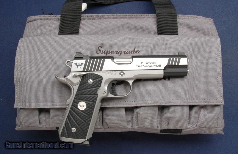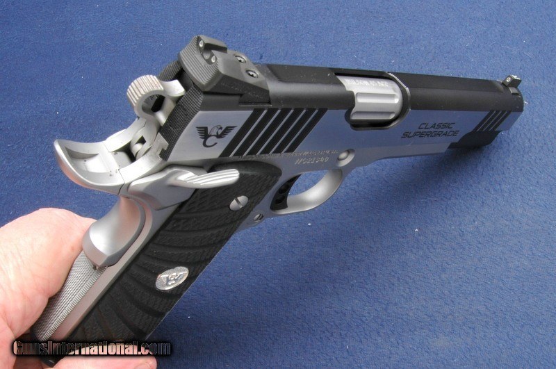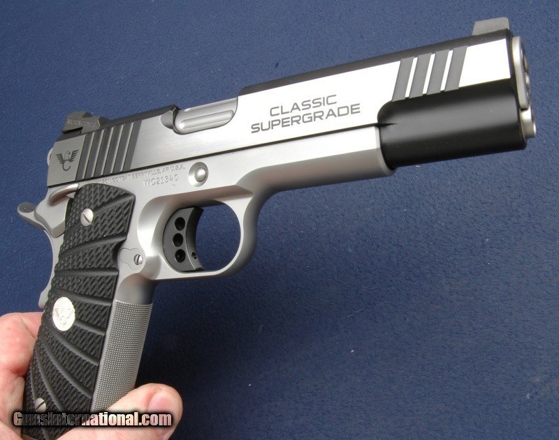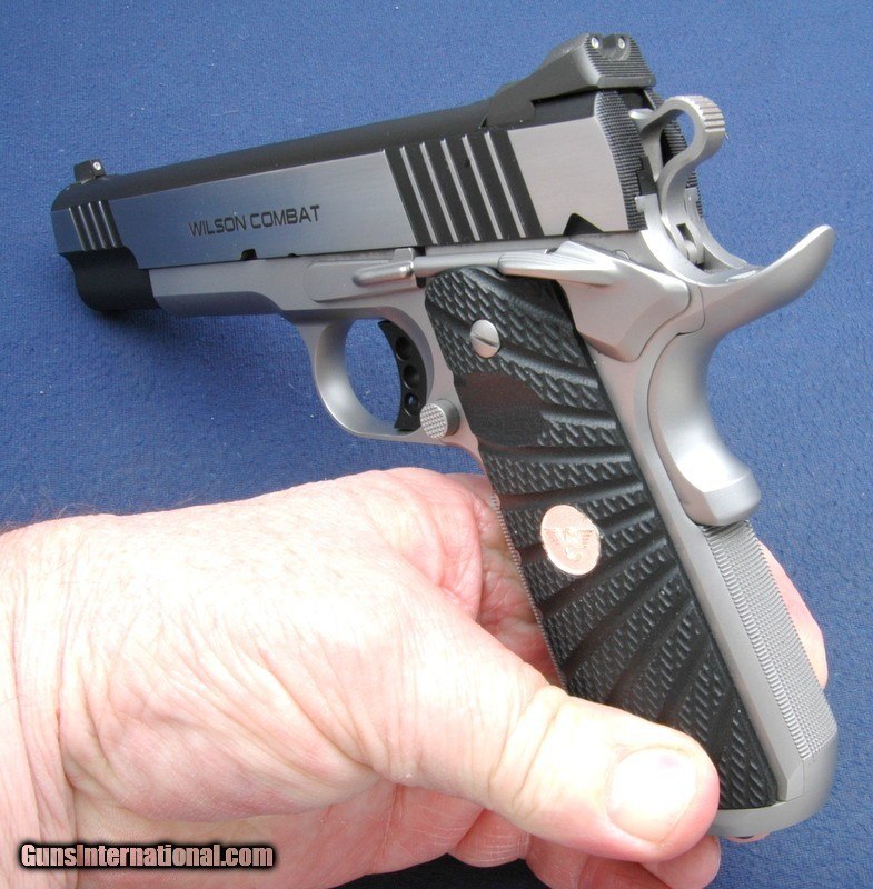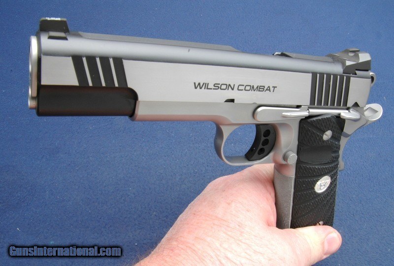 Description: Top of the line Wilson Combat pistol here. Pretty much everything they can do to a 1911, they've done to this one. It is a gov't model, so full size with 5" barrel, serrated slide, fluted barrel, Wilson Combat sights. Nice trigger, checkered frontstrap, all the ups and extras you can think of! Check the pics and drop the dime! $50 shipping to the lower 48, 3% surcharge for using a CC. If you choose to pay with a personal check, we will hold the item for up to 10 days to make sure that it clears. Please expedite such pymts as we will hold an item on your word for 5 days. SOLD Handgun Caliber: .45 ACP (.45 Auto) |