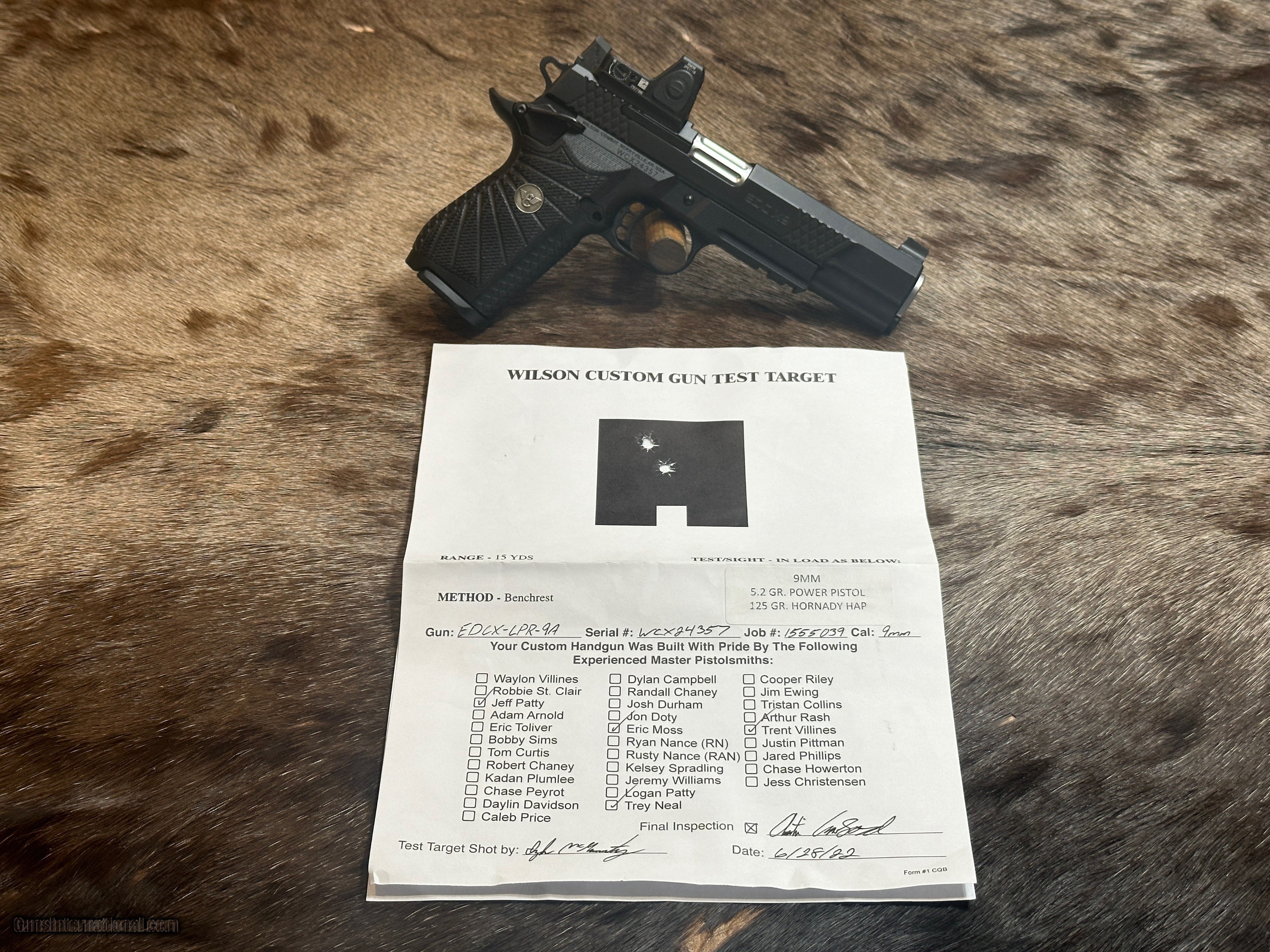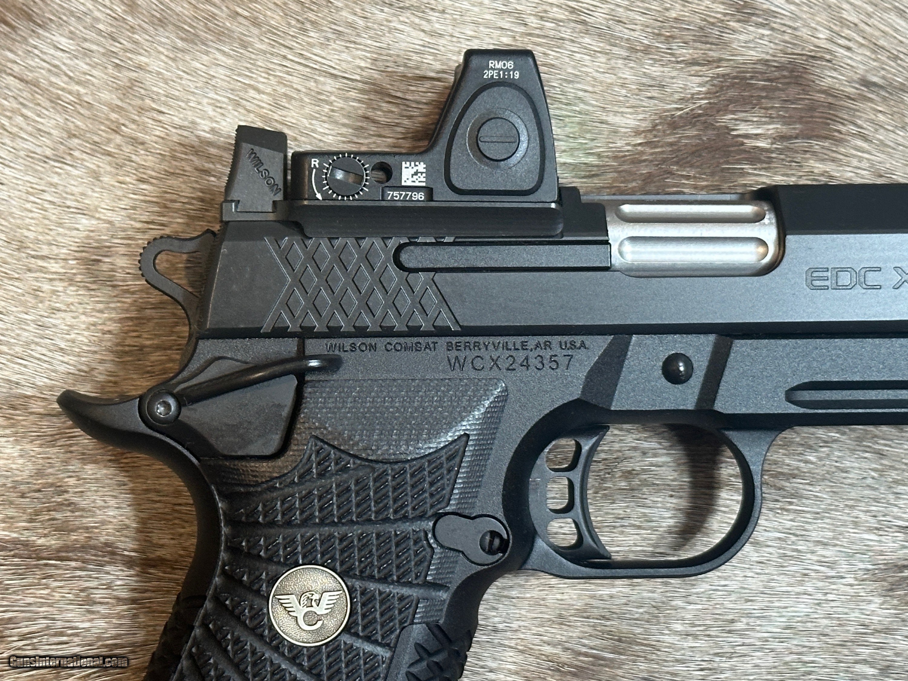 LNIB DISPLAY, UNFIRED WILSON COMBAT EDCX9L 9MM 5", RECON RAIL, FACTORY TRIJICON RMR, AMBI SAFETY, 4 MAGS - LAYAWAY AVAILABLE