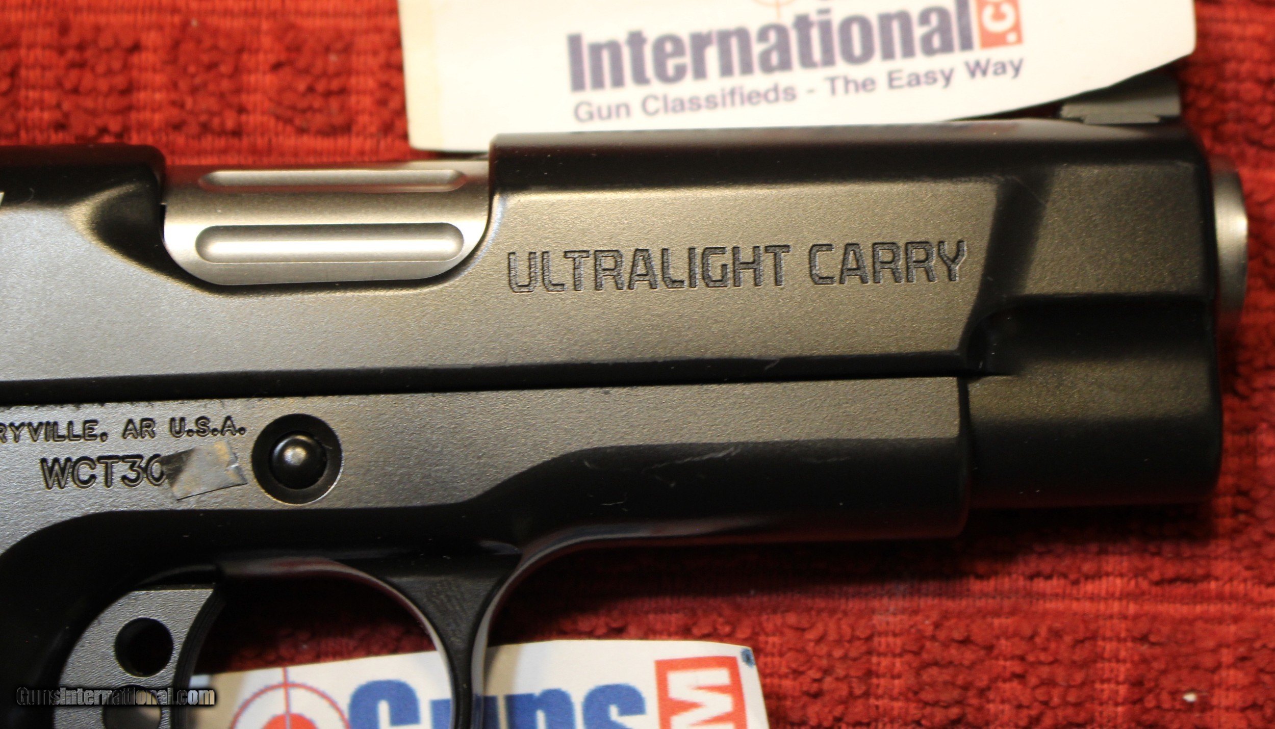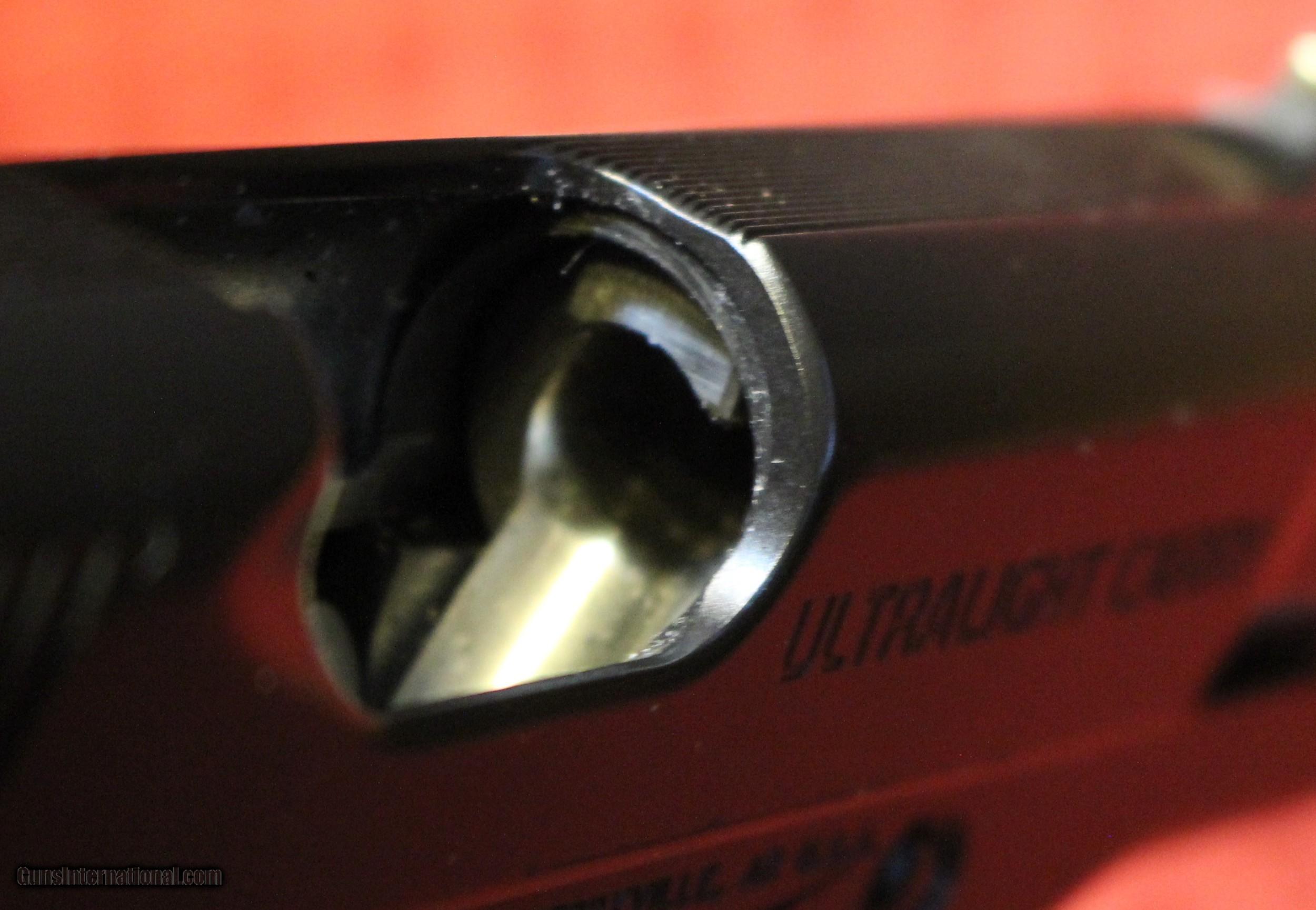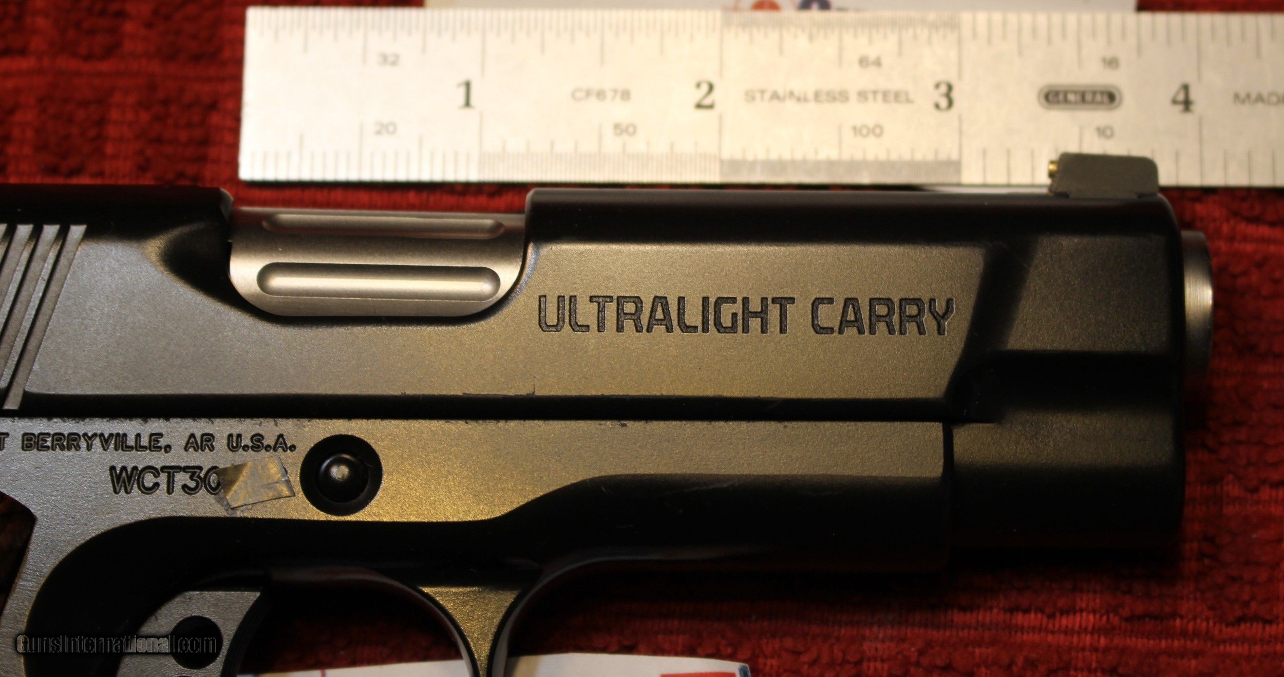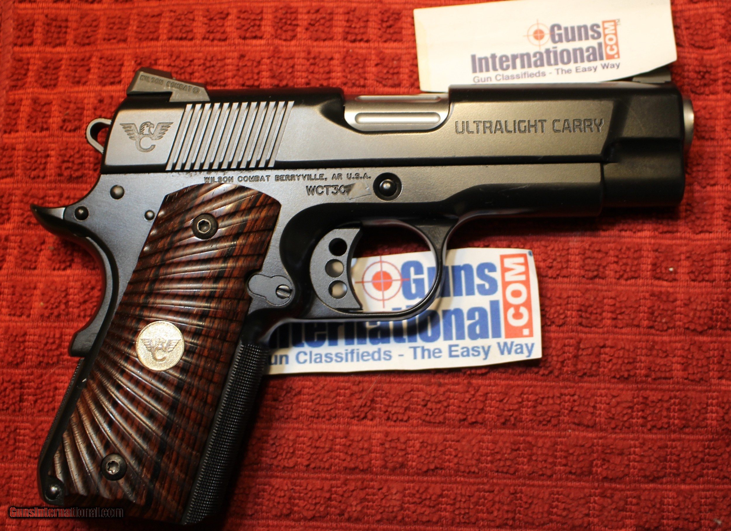 Description: Wilson Combat 1911 Ultra Light Carry Compact 38 Super There are Three (3) magazines with the firearm Magazines are NOT Wilson Combat. The magzines are Tripp magazines There is everything you see in the pictures with the gun. Look closely at the pictures as what you see in what you get. Listed as USED as this came from a store out of business and is or was inventory. There is no history or round count and we do not estimate. Just gauge from the pictures You are welcome to ask questions and ask for additional pictures Please check our other listings for the items. NOTE: Look close at the pictures posted Copied from another listing so you have the specifications for the item. The Ultralight Carry Compact has all the cutting-edge features of the Ultralight Carry in a lighter smaller package. A 1" shorter slide and ½ inch smaller grip frame than a full-size 1911 ensure that you will always have your Ultralight Carry Compact when needed. The fluted heavy bull barrel is not only attractive, but functional-- it traps dirt and debris that can otherwise cause a malfunction. Try an Ultralight Carry Compact and see why it is quickly becoming a top concealed carry choice of seasoned tactical shooters. SPECIFICATIONS