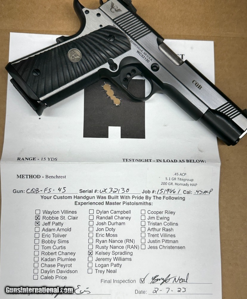 Description: Wilson Combat CQB 45 ACP Stainless Steel Two-Tone CQB-FS-45 - Factory New SOLD |