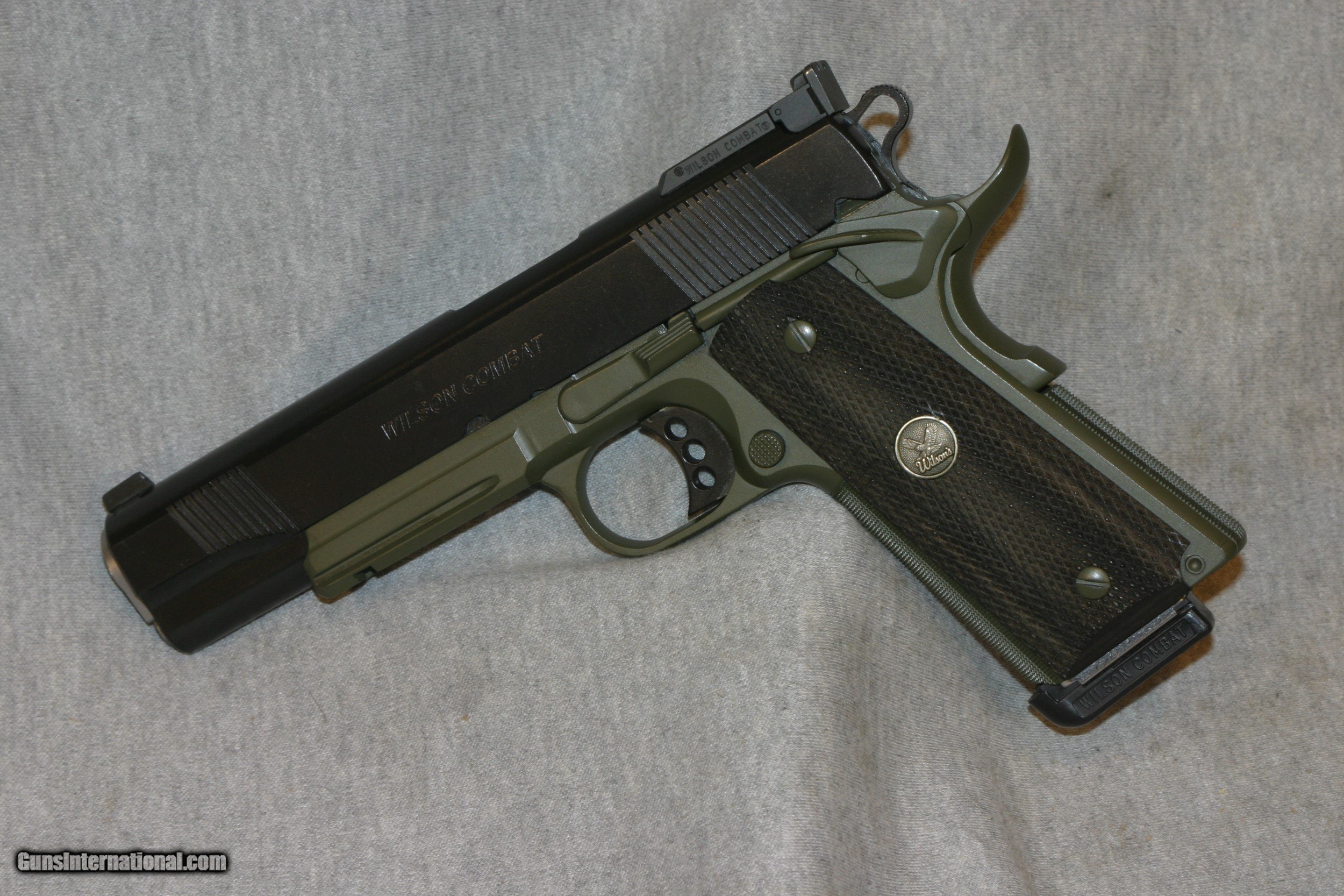 Description: LIKE NEW CONDITION, TWO-TONE(BLACK/GREEN) WILSON COMBAT CQB 5" WITH LIGHTRAIL IN .45 ACP SOLD |