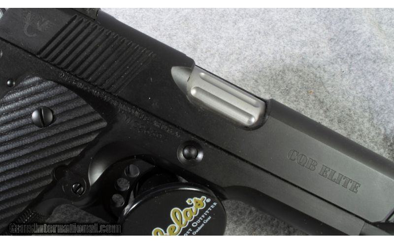 Description: Wilson Combat CQB Elite 1911 style pistol in 9 MM Factory bag/clean cloth, gray pouch, extra mags as shown 9mm Luger SOLD Chambers: 9 MM Metal Condition: Very Good Bore Condition: Bright Barrels: 5 Triggers: Single Action Sights: Factory Fixed Combat with green front Item Location: short pump |