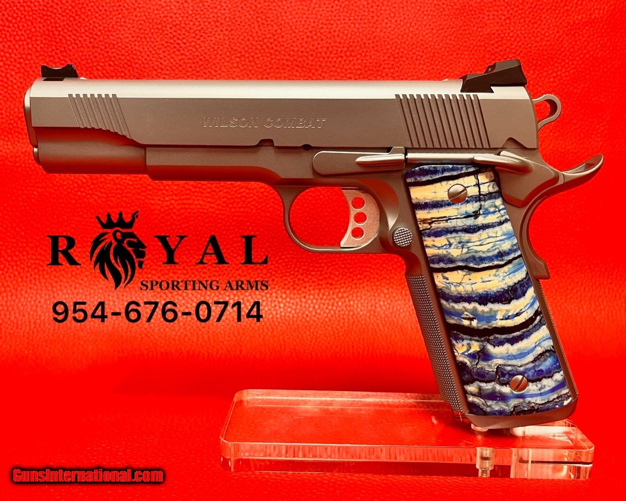 Description: JUST IN AT ROYAL SPORTING ARMS !! Wilson Combat CQB Elite .45 ACP with spectacular and rare mammoth molar grips upgrade! GOVT SIZE .45ACP Mammoth Molar Grip $850 Upgrade ! The Close Quarters Battle Elite blows the competition away with a standard package of custom features designed to meet the needs of tactical shooting professionals, each selected with the input of experts in the field. Here’s what is standard: Bullet Proof® parts throughout, serrations on the top and the rear of the slide, Battlesight rear sight with fiber optic front sight, matching serrations on the back of the extractor, checkered mainspring housing and front strap for a sure grip, and standard G10 grips with a tapered cut-out for easy access to the semi-extended magazine release button. If your requirements are for a combat pistol, a must-work-every-time firearm, custom built to your specifications, put a Wilson Combat® CQB Elite On Your Side® today. Call/text to purchase 954-676-0714 ROYAL SPORTING ARMS IS AN AUTHORIZED DEALER FOR KIMBER , NIGHTHAWK , WILSON COMBAT , KORTH and many more!! Please check out our other listings! Thanks For Looking! SOLD |