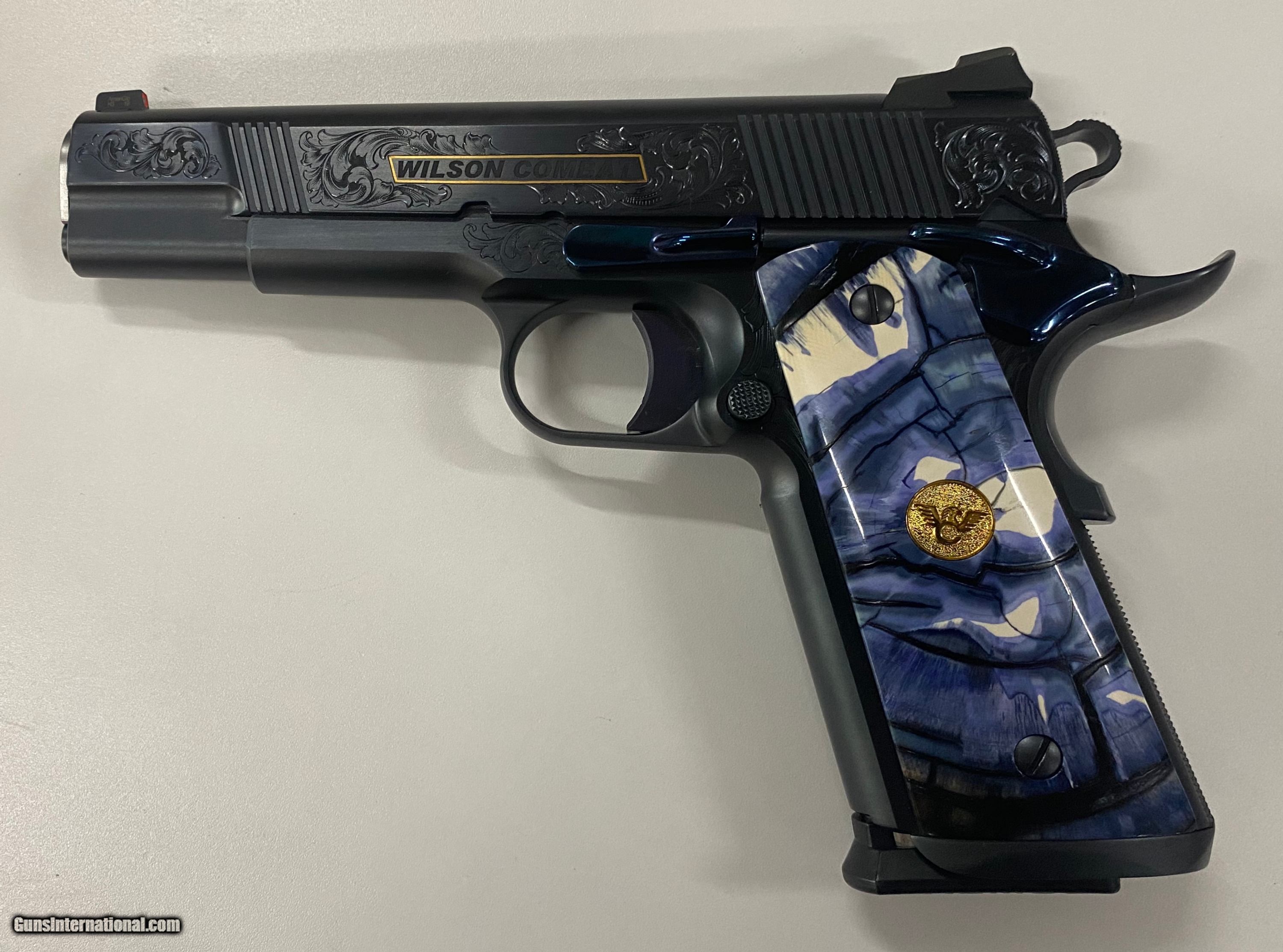 Description: Wilson Combat Custom Engraved CQB Elite 45 ACP Mamoth Grips Gold Trim - Factory New SOLD |