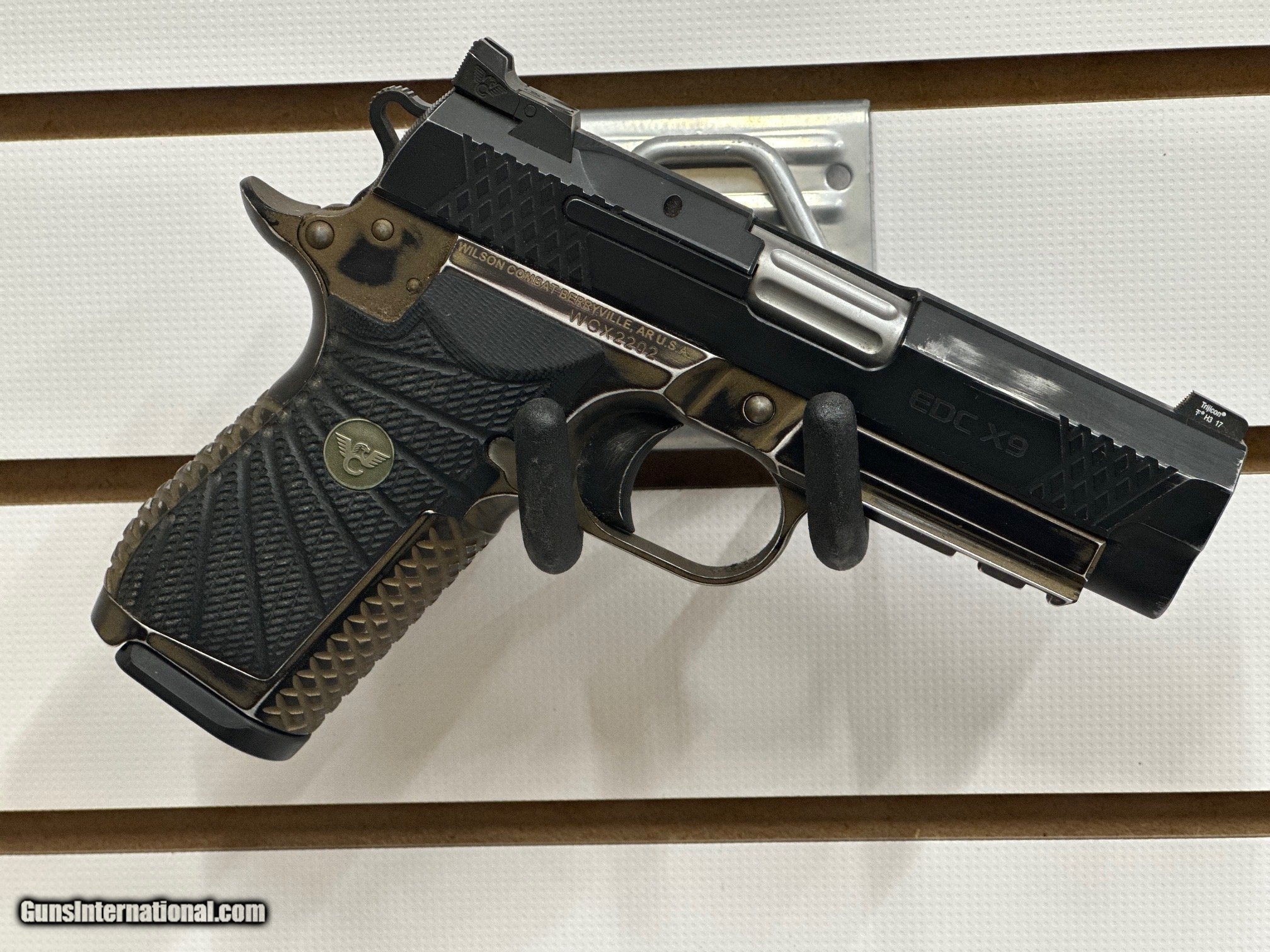 Description: Guns Listing ID: 1288052 The Wilson Combat EDC X9 9mm defensive handgun is now available with a 3.25\" subcompact barrel and slide assembly. This rendition of the EDC X9 is a very fast-handling defensive carry gun. The hand-fitted 3.25\" stainless-steel barrel design has the same match-grade accuracy potential as the larger EDC X9 handguns and is painstakingly tuned by our gunsmiths for flawless reliability with a wide variety of target and defensive ammunition. The 3.25\" subcompact slide assembly is tailored to the varying power level of 9mm ammunition and maintains impressive reliability in all conditions, even when heavily fouled and low on lubrication. Other features include a Tri-Top slide profile with user-replaceable front sight, single lug tapered cone match-grade 1911 barrel, rear Tactical Concealment Battlesight, and a rugged, user-replaceable extractor. The X-frame is a 15-round, high capacity 9mm 1911 frame that is similar in size to a traditional compact, single stack 1911. The X-frame is machined at Wilson Combat from T6-7075 aluminum and accepts a high-capacity magazine with a grip that is smaller in circumference than a standard 1911 while retaining traditional 1911 controls. The EDC X9 15 and 18-round, double-column magazines were developed jointly with Mec-Gar, industry leaders in double column magazine design. The screwless X-frame design uses hammer spring tension to keep the aggressive traction Wilson/VZ G-10 starburst pattern grips securely in place. The result is a highly concealable, high-capacity pistol frame that completely disassembles for cleaning with only a single punch without screws or frame bushings and a more natural, oval grip shape. The ergonomic design of the X-frame grip in conjunction with an enlarged trigger guard window and your choice of radiused trigger pad length fits all hand sizes comfortably and improves recoil control. The EDC X9 front and back strap are machined with the Wilson Combat X-Tac tread pattern that provides a comfortable but tactile grip in all shooting conditions. The EDC X9 3.25\" will fit the majority of holsters on the market designed for subcompact 1911 pistols and is offered with or without an accessory rail. Thoroughly tested by our team of designers, champion shooters, and external industry experts, the Wilson Combat EDC X9 offers discriminating shooters 1911 match-grade accuracy, superior ergonomics, and concealability combined with modern service pistol capacity and reliability. Key Details Available calibers: 9mm Base price: $3,210 (9mm) Magazine capacity: 15 rounds Barrel length: 3.25\" Overall length: 6.75\" Sight radius: 5\" Height: 5.25\" Width: 1.4\" Weight empty: 27.6 oz Weight loaded: 34.3 oz Accuracy guarantee: 1.5\" at 25 yds Specifications High-Capacity Compact size Aluminum X-Frame with Reliability Enhanced Frame Rails Unique X-TAC frontstrap/backstrap treatment Concealment Bullet Proof® hammer Bullet Proof® thumb safety 3 ½# – 4 ½# crisp trigger pull with lightweight medium pad Bullet Proof® magazine release Black G10 aggressive Starburst grips with Pewter medallions 3.25\" Stainless Steel Tri-Top slide with external extractor Black Armor-Tuff finish on slide Unique X-TAC Rear cocking serration treatment on slide Heavy machine chamfer on bottom of slide Concealment Battlesight with red fiber optic front sight with 4-40 hex head cap screw 3.25\" Stainless Cone barrel with Reliability Enhancing Lock-up, flush cut reverse crown Fluted chamber Fluted barrel 30 LPI slide top serrations Carry cuts 2 18-round capacity magazines with optional magwell 2 15-round capacity magazine without magwell Weights shown are close approximations. Due to slight variations in all parts and/or custom option deviations, we cannot guarantee the weight to be 100% specific on any firearm. Due to current demand, components may be substituted in order to complete your firearm in a timelier manner. About the X-Frame and Enhanced Reliability System Video: Wilson Combat EDC X9 Video: Wilson Combat shooting team with the Wilson Combat EDC X9 Video: Wilson Combat EDC X9 Cleaning and Maintenance Image Gallery Jump up to the top View asGridList7 ItemsSort By Product Name Set Descending Direction EDC X9, 9mm, Ambi Safety, Black EDC X9, 9mm, Ambi Safety, Black EDC X9, 9mm, Ambi Safety, Black $3,260.00 Item Number : HANDGUN6905 Add to Cart ADD TO WISH LIST ADD TO COMPARE EDC X9, 9mm, Ambi Safety, Black EDC X9, 9mm, Ambi Safety, Black EDC X9, 9mm, Ambi Safety, Black $3,260.00 Item Number : HANDGUN6776 Add to Cart ADD TO WISH LIST ADD TO COMPARE EDC X9, 9mm, Black EDC X9, 9mm, Black EDC X9, 9mm, Black $3,210.00 Item Number : HANDGUN6911 Add to Cart ADD TO WISH LIST ADD TO COMPARE EDC X9, 9mm, Black EDC X9, 9mm, Black EDC X9, 9mm, Black $3,210.00 Item Number : HANDGUN6913 Add to Cart ADD TO WISH LIST ADD TO COMPARE EDC X9, 9mm, Black EDC X9, 9mm, Black EDC X9, 9mm, Black $3,210.00 Item Number : HANDGUN6917 Add to Cart ADD TO WISH LIST ADD TO COMPARE EDC X9, Lightrail Frame, 9mm, Black/Flat Dark Earth Combat Tuff EDC X9, Lightrail Frame, 9mm, Black/Flat Dark Earth Combat Tuff EDC X9, Lightrail Frame, 9mm, Black/Flat Dark Earth Combat Tuff $3,610.00 Item Number : HANDGUN6875 ADD TO WISH LIST ADD TO COMPARE EDC X9, Lightrail Frame, 9mm, Blaze FX EDC X9, Lightrail Frame, 9mm, Blaze FX EDC X9, Lightrail Frame, 9mm, Blaze FX $3,310.00 Item Number : HANDGUN6947 Add to Cart ADD TO WISH LIST ADD TO COMPARE Show 12 per page Shopping Options In Stock Typical Usage Optics Ready Railed Compensator Standard Threaded Barrel Ambi Safety Standard Removable Grip Panels Discontinued Model My Wish List You have no items in your wish list. SIGN UP FOR OUR NEWSLETTER: Enter your email address SUBSCRIBE CUSTOMER CARE Contact Us My Account Create Account Terms and Conditions Privacy Policy ABOUT US About Us Locate a Dealer Custom Firearms Orders Careers SUPPORT Shipping Restrictions Financing and Discounts Handgun FAQ Long Gun FAQ Parts FAQ OUR BRANDS