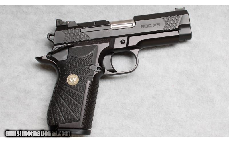 Description: Excellent condition, light wear, few small scratches. Comes with soft case and two 15rd mags. Compact size 9mm semi auto, 4" bull barrel with recessed crown, fiber optic front sight, and extended ambi safety levers. Smooth crisp single action trigger, lightweight hammer, diamond checkered front and rear grip surfaces, and front and rear slide serrations. An outstanding pistol for concealed carry with many factory features usually found only on custom firearms. 9mm Luger SOLD Chambers: Semi auto Metal Condition: Excellent Bore Condition: Bright Barrels: 4 Triggers: Single action Butt Pad: Textured grips Sights: Green fiber optic front sight Item Location: La Vista, NE |