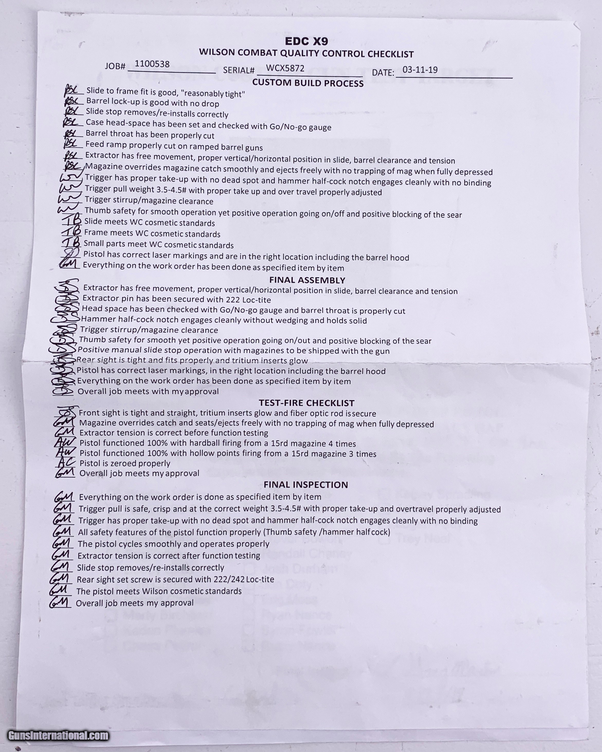 WILSON COMBAT EDC X9 SEMI AUTO 9MM W/ FACTORY GREY CASE, PAPERS, TEST TARGET, 2 MAGS, & MANUAL FULL PACKAGE