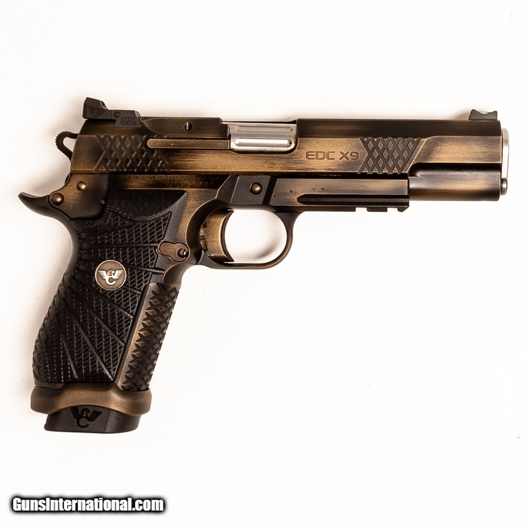 Description: Guns Listing ID: 569186 For those who love the fit and feel of the 1911 but prefer double stack 9mm handguns, the Wilson Combat EDC X9 delivers in spades. This impeccably crafted machine is the perfect companion for serious shooters who need an unwaveringly reliable sidearm. This EDC X9 has several upgrades and is in excellent condition! It sports a Combat Tuff finish frame and slide, both in beautiful Burnt Bronze and paired with black grips. It‚‚s also equipped with an under-barrel rail, EDC X9 magwell/grip extension, green fiber optic front sight, medium trigger pad, and small backstraps. The original soft case, manual, three 10-round magazines, and two 18-round magazines are included. SOLD Manufacturer: WILSON COMBAT Model: EDC X9 Caliber Info: 9MM LUGER Condition: Used - Certified Barrels: 5 BARREL Finish: BURNT BRONZE/BLACK |