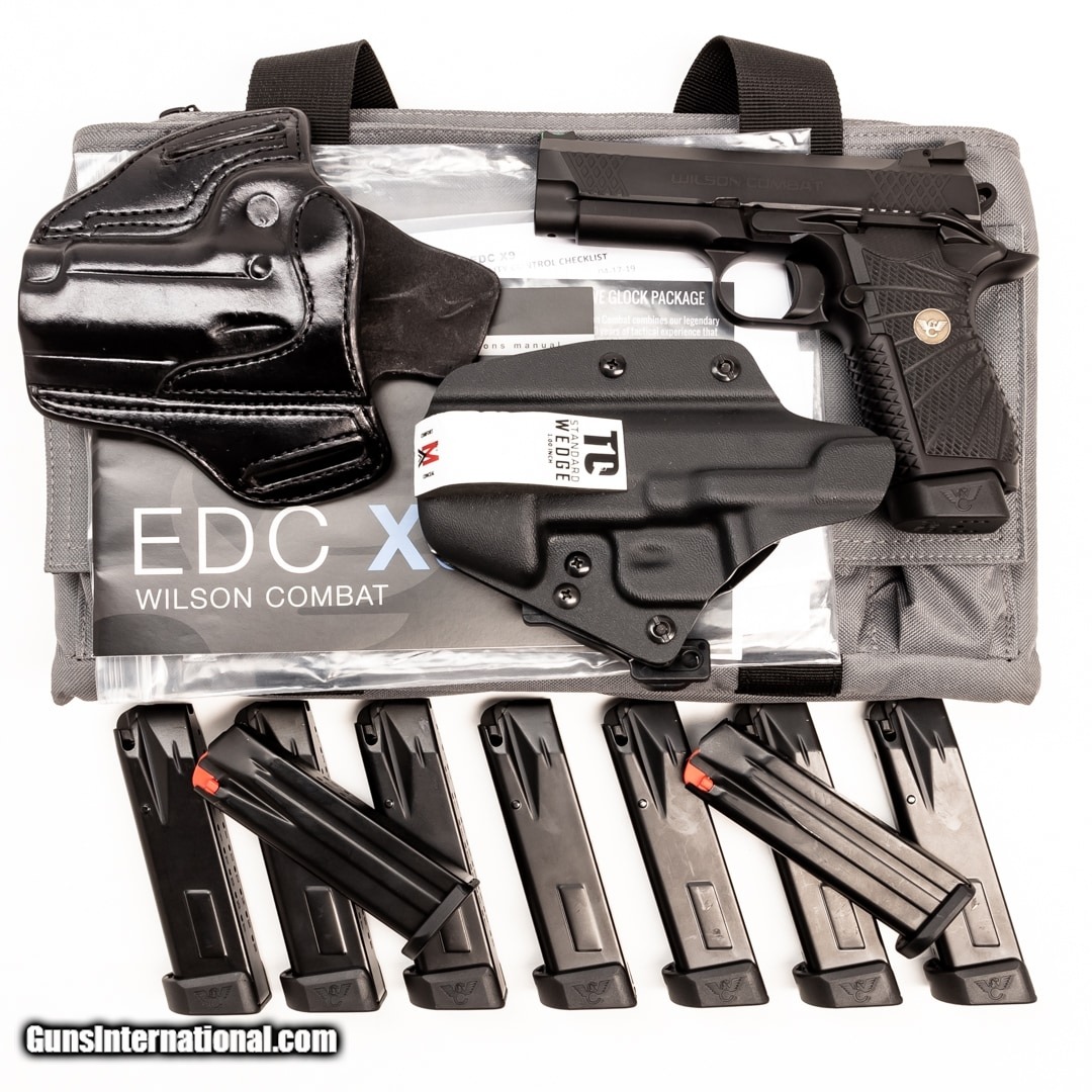 Description: Guns Listing ID: 872302 For those who love the fit and feel of the 1911 but prefer double stack 9mm handguns, the Wilson Combat EDC X9 delivers in spades. This impeccably crafted machine is the perfect companion for serious shooters who need an unwaveringly reliable sidearm. This EDC X9 features a safety. Purchase includes the original soft carry case, owner‚‚s manual, two 15-round magazines, eight 18-round magazines, a right-handed OWB Palmetto leather holster, and a right-handed IWB We the People holster. Get the best bang for your buck when you get a Certified Used Firearm . When you see the Certified Used stamp on any of our firearms, you can be confident that you’re getting exactly what you want – a gun only in very good to excellent condition and held to the highest quality standard. All Certified Used Guns come with a ‘no questions asked’ return policy . PLUS, ALL CERTIFIED USED GUNS SHIP FREE SOLD Manufacturer: WILSON COMBAT Model: EDC X9 Caliber Info: 9MM LUGER (9X19 PARA) Condition: Used - Certified Barrels: 4 BARREL Finish: BLACK |
