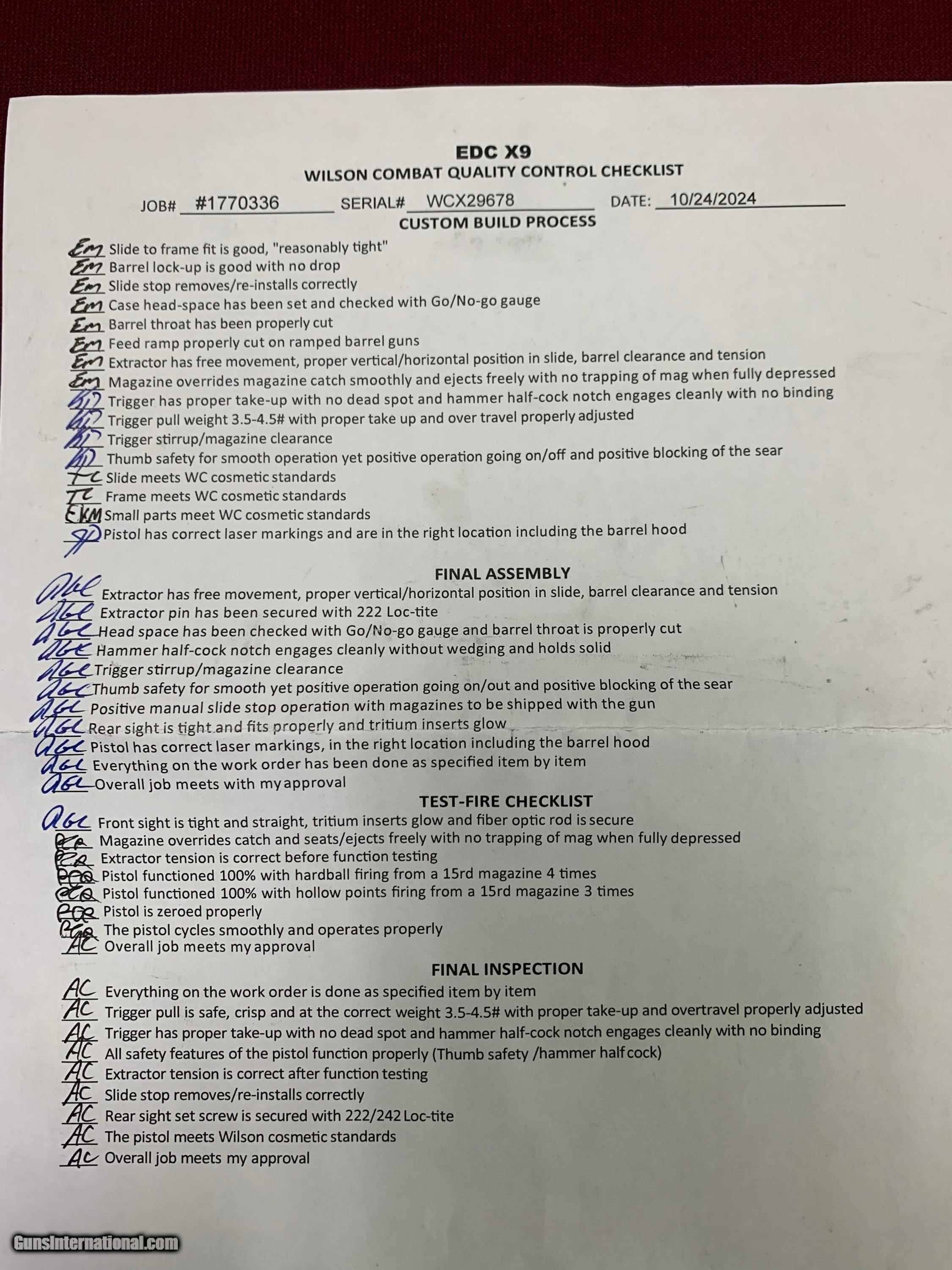Description: WILSON COMBAT EDCX9 2.0 LNIB w/STEINER SIGHT 3 MAGAZINES $3,500 SN:WCX29678 BUYER PAYS SHIPPING - 3% CARD FEE SOLD Handgun Caliber: 9x19mm Parabellum (9mm Luger, 9x19mm NATO) |