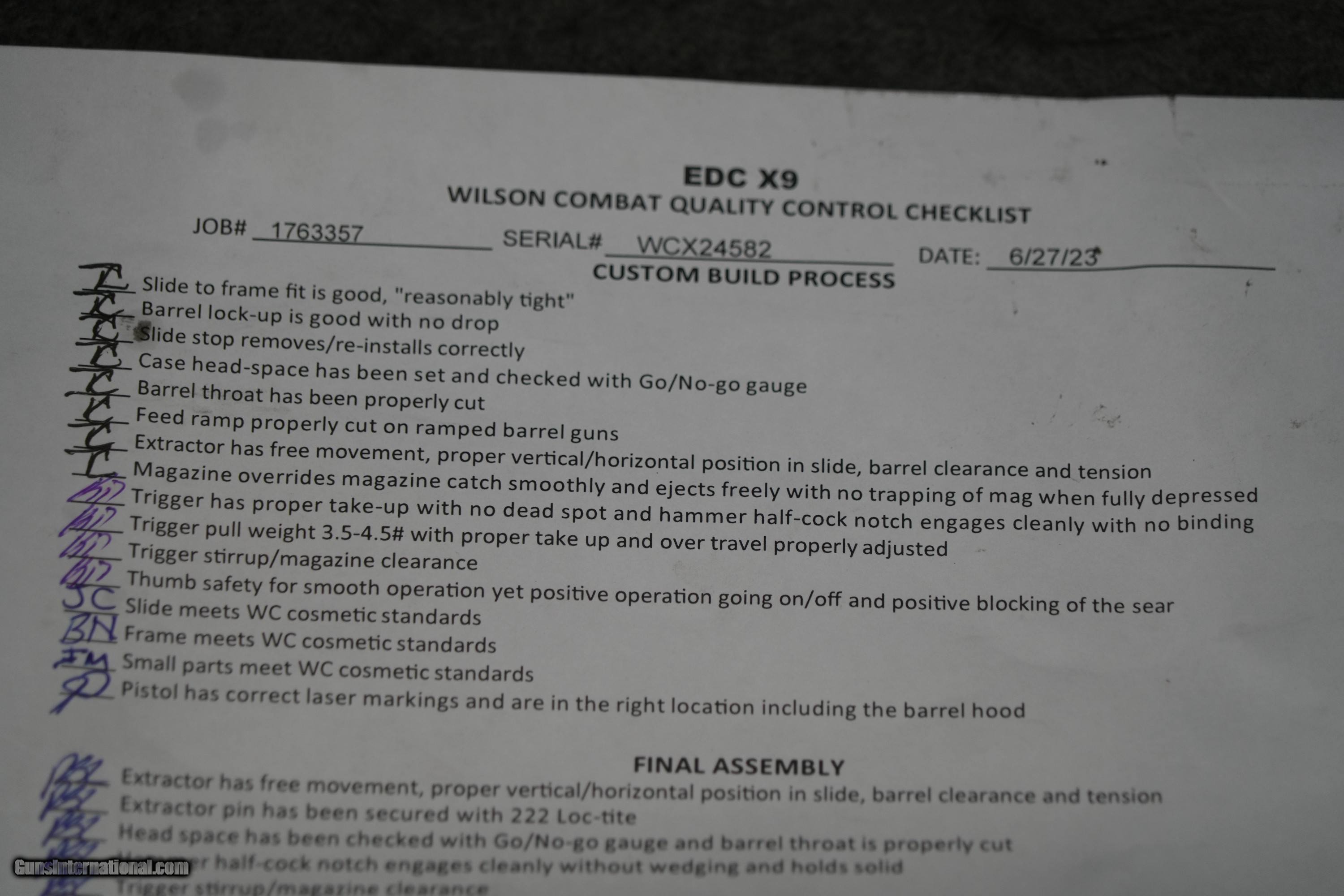Description: *NOTE: The firearm pictured is the ACTUAL gun for sale! All images are of the ACTUAL item, unless specified otherwise. The item seen is the item you will receive. * The Wilson Combat eXperior Double Stack series handguns are a unique blend of classic 1911 design with modern reliability and ergonomic enhancements that optimize overall handling and shooting performance. The 9mm frames are machined at Wilson Combat from T6-7075 aluminum and accept a high capacity magazine with a grip that is smaller in circumference than a standard 1911 while retaining traditional 1911 controls. All EXPERIOR models feature the new Wilson Combat TRAK grip texture-a hybrid, large asymmetric, flat-top checkering pattern that offers an exceptional, non-abrasive grip without snagging on cover garments. The TRAK grip pattern on the frame and grips offers unprecedented comfort while enhancing recoil control. More Information Safety: Ambidextrous Thumb Safety Frame Finish: Black Armor Tuff Embellishments: Top Slide Serrations Front Sight: Fixed Rear Sight: Fixed Grips: G10 Features: Flat Backstrap Medium Length Trigger TRAK Pattern Front Strap Slide Finish: Black Armor Tuff Finish: Black Magazine Count: 2.000 Firing System: External Hammer Magazine Type: Double Stack Magazine Barrel Configuration: Single Barrel Description: Fluted Muzzle: Flush Cut Reverse Crown Rifled Barrel: Yes Dust Cover Rail: Picatinny Rail SOLD Handgun Caliber: 9x19mm Parabellum (9mm Luger, 9x19mm NATO) Manufacturer: Wilson Combat Model: eXperior Barrel Length: 5" Barrel Condition: BRAND NEW |