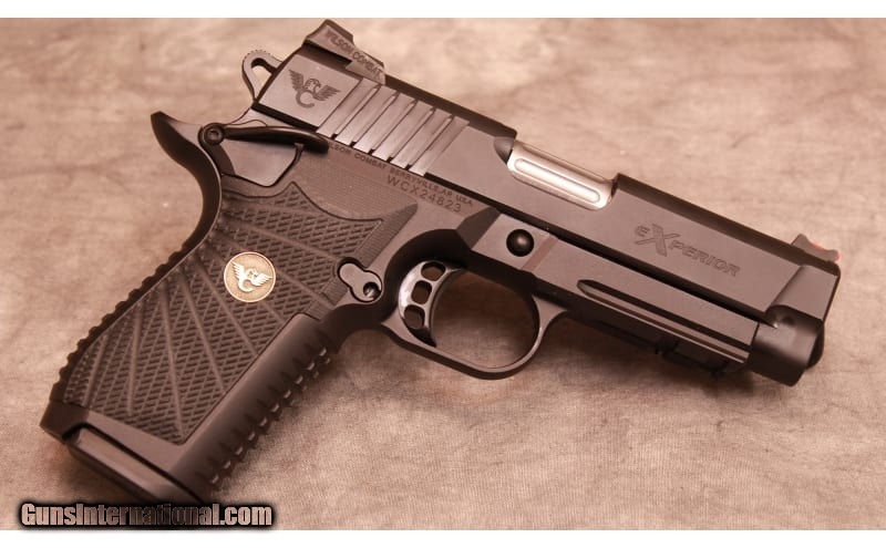 Description: The Wilson Combat eXperior Double Stack series handguns are a unique blend of classic 1911 design with modern reliability and ergonomic enhancements that optimize overall handling and shooting performance. The 9mm frames are machined at Wilson Combat from T6-7075 aluminum and accept a high capacity magazine with a grip that is smaller in circumference than a standard 1911 while retaining traditional 1911 controls. This a "never been fired" pistol sold through our used gun program. High-Capacity Compact size Aluminum frame TRAK texture on Frontstrap/Backstrap treatment Concealment Bullet Proof® hammer Bullet Proof® thumb safety 3 ½# – 4 ½# crisp trigger pull with Medium length pad Bullet Proof® magazine release Black G10 aggressive Starburst grips with Pewter medallions Countersunk slide stop 4" Stainless Steel slide (standard 1911 slide) Black Armor-Tuff finish on slide Battlesight with red fiber optic front sight4" Stainless match grade barrel, Flush Cut Reverse Crown Fluted chamber Fluted barrel 30 LPI slide top serrations 40 LPI serrated rear of slide Wide rear cocking serrations Heavy machine chamfer on bottom of slide Carry cuts/Ball Endmill cuts 9mm Luger SOLD Chambers: 9MM Luger Bore Condition: "4"" Stainless match grade barrel, Flush Cut Reverse Crown Barrels: 4 Inches Triggers: 3 ½# – 4 ½# crisp trigger pull with Medium length pad Weight: 30.5 oz Sights: Battlesight with red fiber optic front sight Item Location: Broken Arrow, OK |