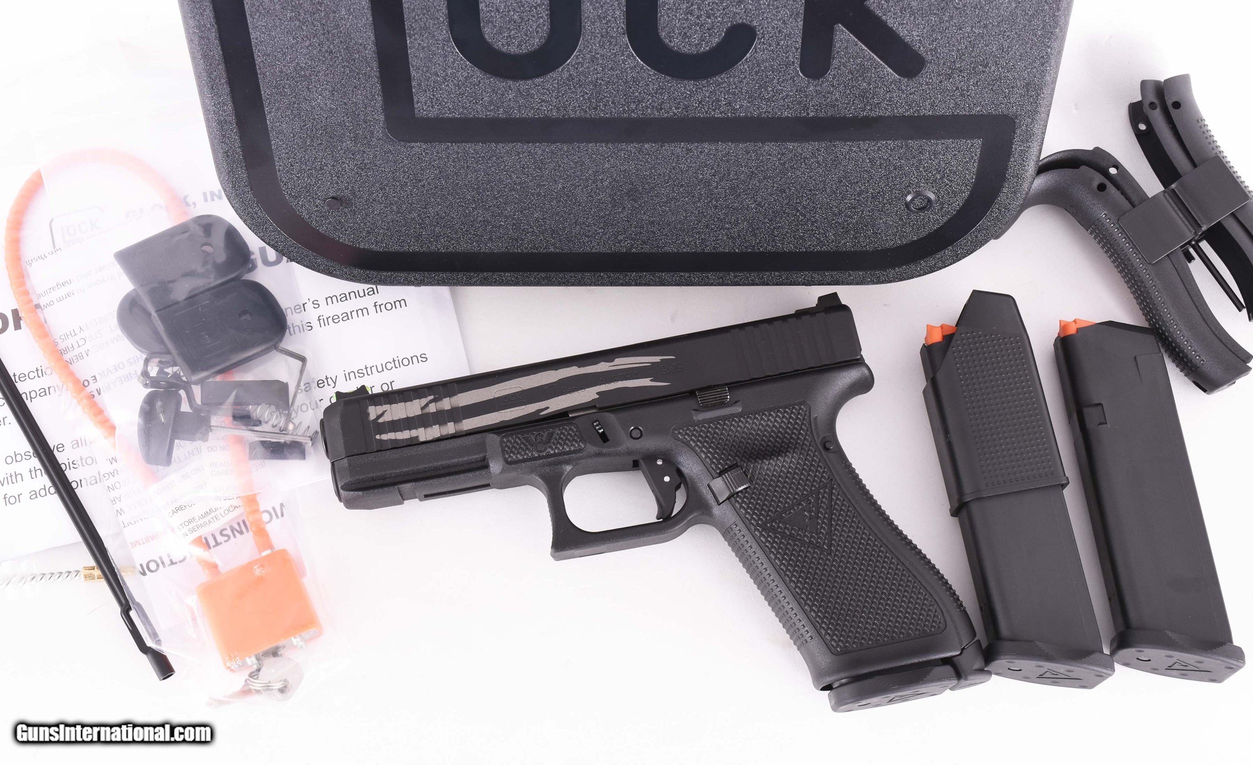 Description: General Specs: Wilson Combat/GLOCK, Year 2021, 9mm, 26oz Serial Number: BSWG411 Leading firearms expert, tactical trainer and Special Operations veteran Larry Vickers has strong ideas about tactical service pistols and believes the GLOCK® is the finest choice for a polymer framed general-issue handgun. His experiences with the Gen 5 GLOCK® 9mm platform has led him to believe that it is the best of the GLOCK® breed but can be further improved with some subtle and practical customization. With his specific orders in hand, we built Vickers his ideal tactical or concealed carry GLOCK®. To improve traction and shooting comfort, Wilson Combat gunsmiths performed our attractive and functional laser stippling in the Vickers Elite pattern. A duty action tune using the TangoDown/Vickers Tactical flat-faced trigger pad gives you the ultimate tactical trigger for dynamic and precision shooting while the enhanced Vickers Tactical Gen 5 ambidextrous slide stop offers greater surface area and enables more positive speed reloads under stress. Forward slide cocking, and top serrations along with our outstanding Vickers Elite sights and functional Vickers Tactical design accessory parts complete this impressive limited production carry gun package.- Wilson Combat Gen 5 GLOCK® features: