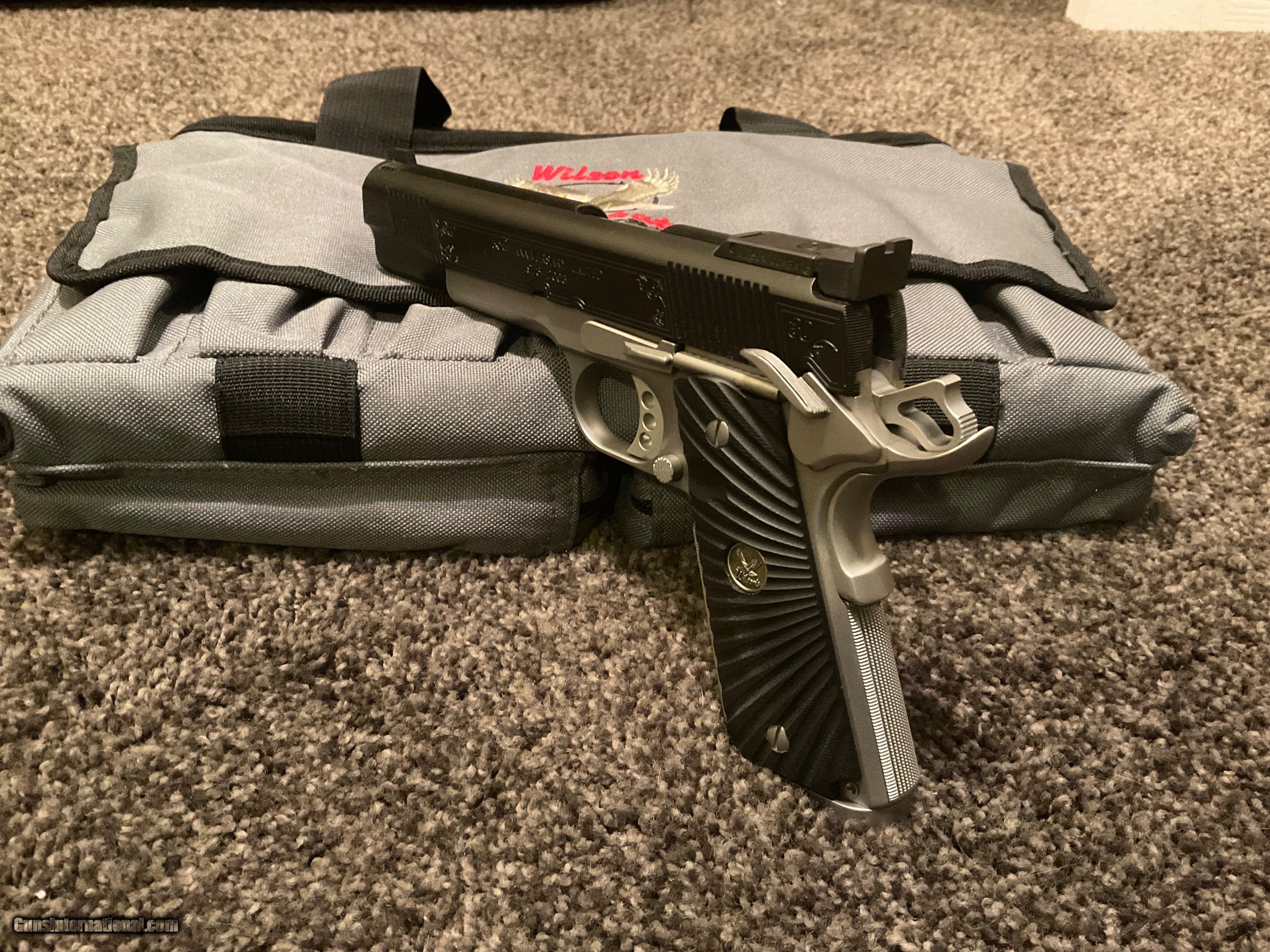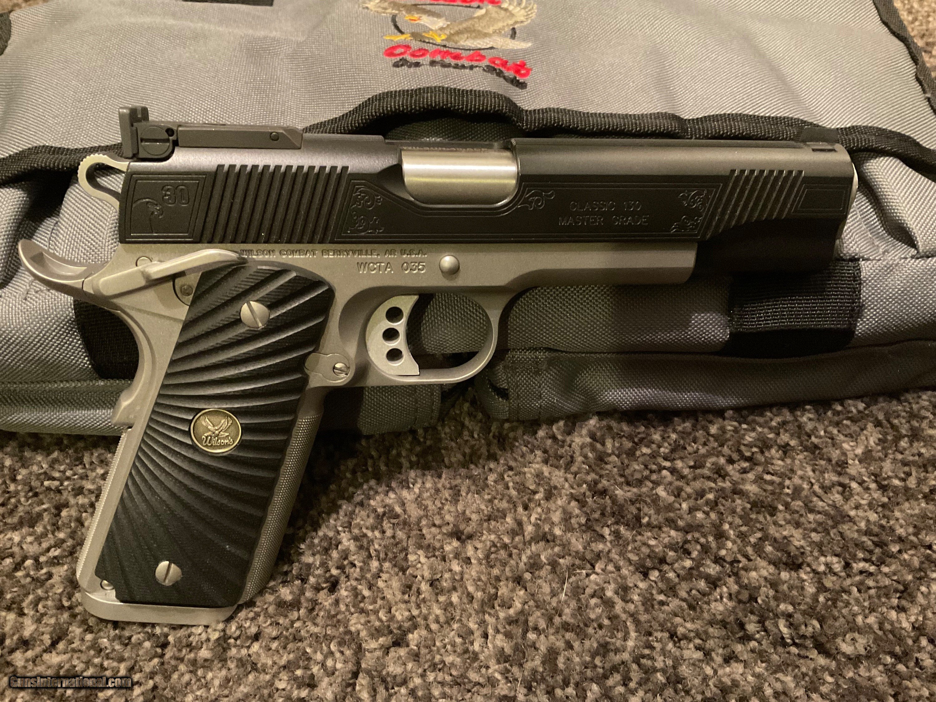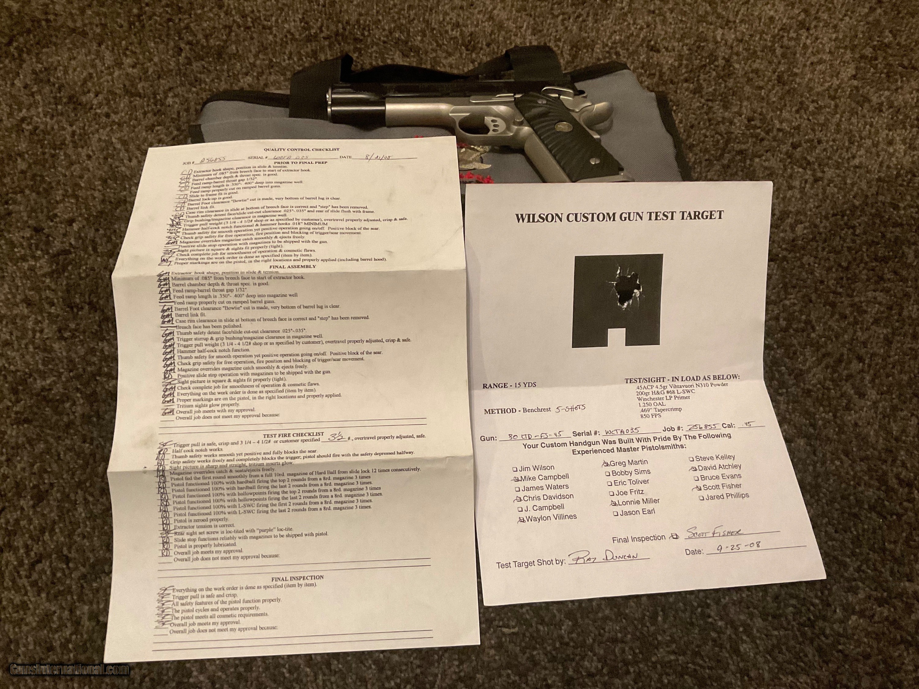 Description: 30yr. Anniversary edition WILSON COMBAT Master grade classic 130. NEVER BEEN SHOT. Carry case 1 mag (8rd) the best there is in 1911 platform. See build sheet... a true classic in design and craftsmanship is top notch. 100% original get this collector edition in unfired condition before its too late. Please ask questions if you are not sure of something. SOLD Handgun Caliber: .45 ACP (.45 Auto) Manufacturer: Wilson combar Model: Classic 130 Serial Number: WCTA 035 Condition: 100 Metal Condition: 100 Bore Condition: 100 Action: Single Finish: Armor tuff Sights: Adj Manufacture Date: 2008 Engraving: Yes Case: Yes Item Location: Utah |