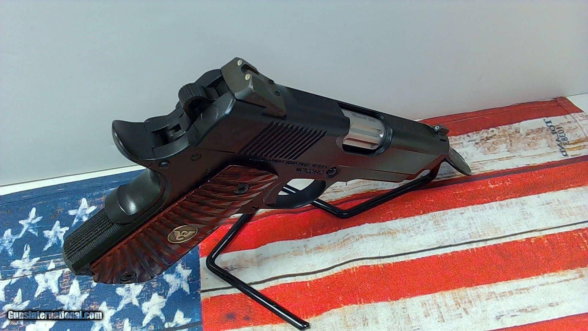 Description: Guns Listing ID: 844354 This is an excellent firearm for any lady! Superb for competition shooting! It‚‚s in overall excellent condition. There are scuffs in the wood grip - left side. See photos. Comes with three magazines (one 8 round and two 10 round) Also has leather OTW holster, along with Wilson Combat range bag. The Ms. Sentinel™ combines over 30 years of building custom firearms with the features often requested by women for their custom carry gun. For maximum concealability, the Ms. Sentinel™ is built from our shortest aluminum frame, making it the smallest and lightest pistol available. Available Calibers: 9mm Magazine Capacity: 8 rounds Barrel Length: 3.6\" Overall Length: 7.2\" Sight Radius: 5.3\" Height: 4.8\" Width: 1.3\" *Weight Empty: 27.6 oz. *Weight Loaded: 31.2 oz. Accuracy Guarantee: 1.5\" at 25 yd SOLD Manufacturer: WILSON COMBAT Model: Ms Sentinel Caliber Info: 9MM LUGER (9X19 PARA) Condition: Used - Non-Certified Barrels: 3.5 BARREL Finish: BLUE |