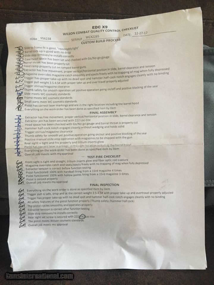 Description: Designed by Bill Wilson and Wilson Combat engineers, and thoroughly tested by our team of designers, champion shooters and external industry experts, the EDC X9 offers discriminating shooters 1911 match-grade accuracy, superior ergonomics, and concealability with modern service pistol capacity and reliability. Making it the superior choice for everyday carry. Great double stack pistol from a name you can trust. This gun was received new from a licensed dealer as payment for labor, I am selling to recoup that payment not due to any fault of the gun. It's only been fired a few times and performed perfectly. Thanks for looking and have a great day! SOLD Condition: like new |