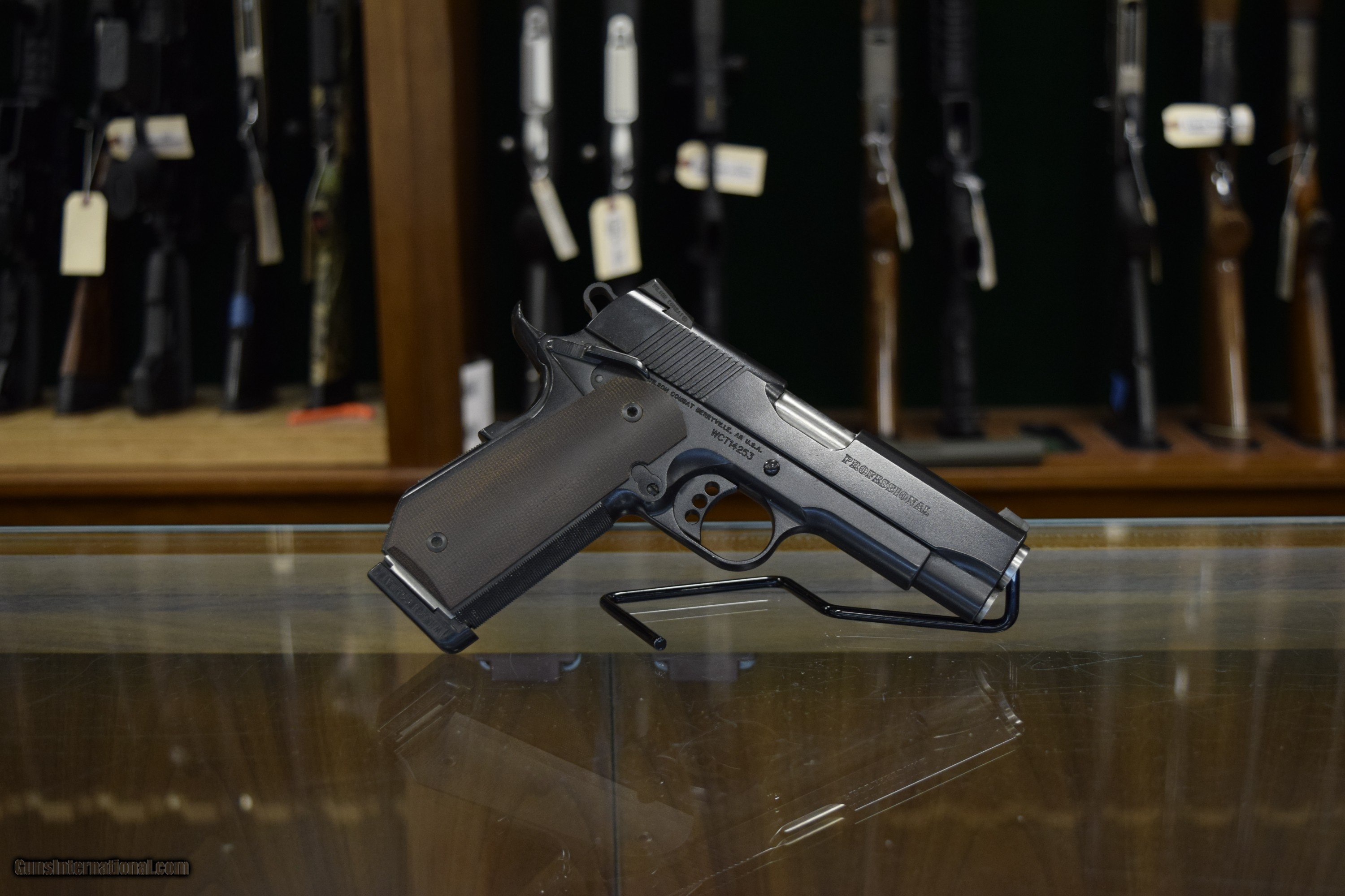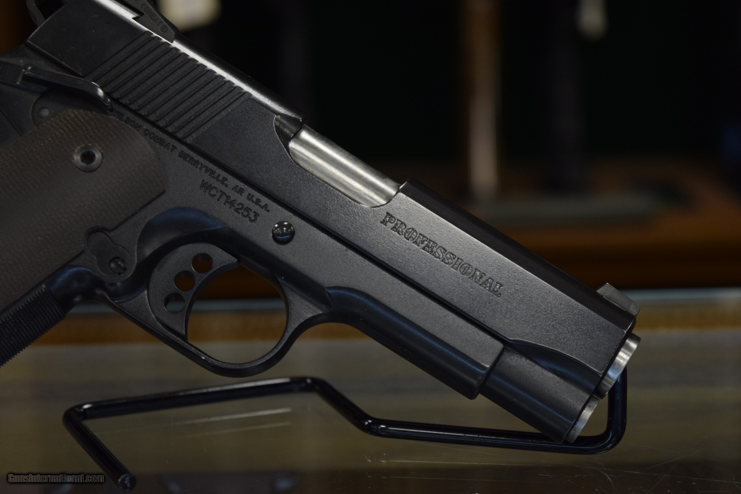 Description: The Wilson Combat Professional is a compact, high-quality 1911-style handgun chambered in .45 ACP, crafted for those who demand top-tier performance in a carry-sized firearm. Featuring a 4-inch match-grade barrel, this handgun strikes a perfect balance between concealability and accuracy, making it ideal for personal defense and professional use. This item comes with a soft case. Overall condition is great with some minor wear from use.