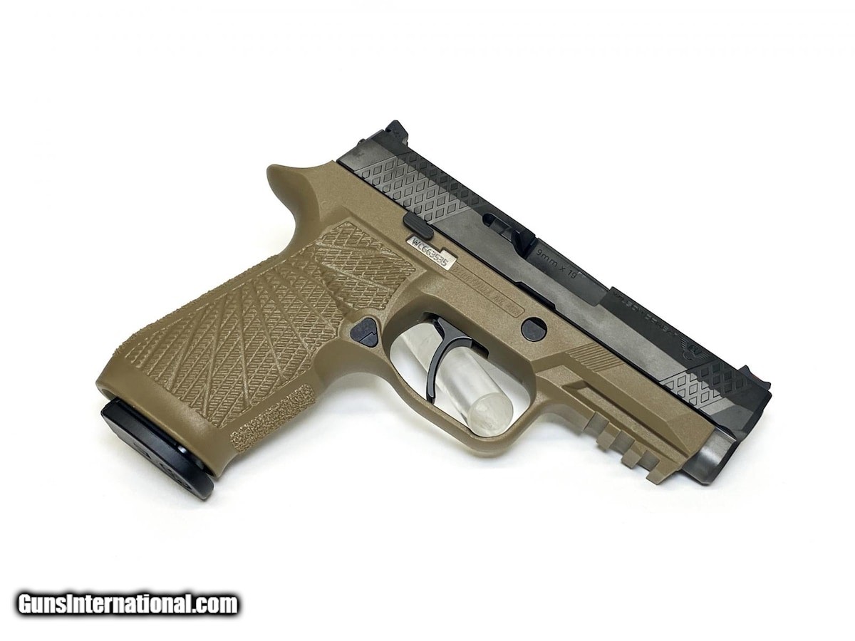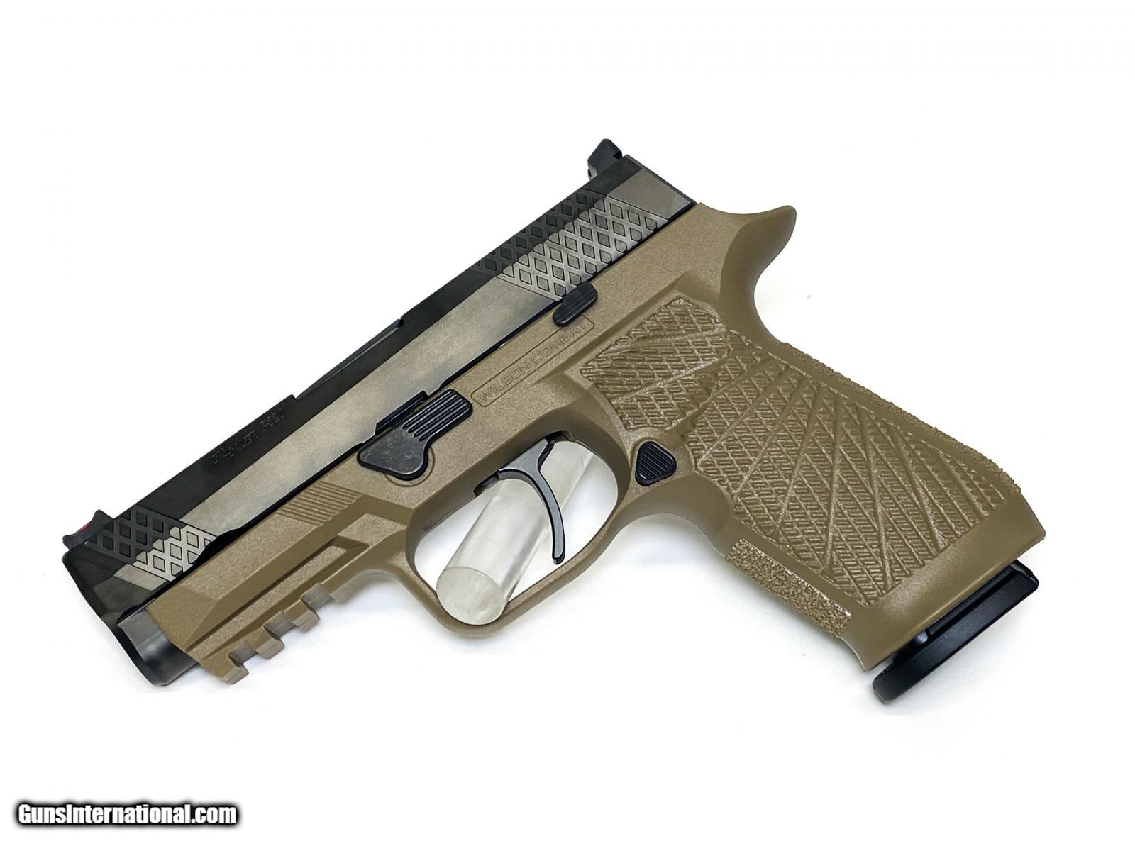 Description: Guns Listing ID: 424176 Reviewed Wilson Combat Sig P320 Carry 9x19mm, FDE Module, Black Slide, Action Tune with Curved Trigger This Pistol was reviewed by Arnzen Arms. It was brand new before the review and has less than 50 rounds on it currently. Wilson Combat gunsmiths and engineers have completely reworked a SIG SAUER P320 chassis and unfinished SIG manufactured slide into our ideal version of a high performance perfected striker-fired pistol. Using the all-new Wilson Combat SIG P320 grip module, our in-house re-machined slide and Wilson Combat performance battlesights, the Wilson Combat Optimized WCP320 will become the new standard in hard-use, striker fired handguns. Our modifications have tailored and tuned the 320 platform for precision tactical pistol shooting. This robust, fast handling pistol wears our Wilson Combat engineered polymer grip module. This newly designed and manufactured grip has enhanced traction, smoother reloading, improved pointablity and superb recoil control in dynamic shooting. This grup turns an already solid platform into an ergonomic shooting machine. The slide has been machined with the Wilson Combat X-TAC pattern for improved manipulation under stress. The front and rear cocking serrations, as well as the slide top, wear this signature Wilson Combat pattern. The stainless steel slide and chromoly barrel wear the most advanced black DLC (Diamond-Like-Carbon) physical vapor deposition finish avaiable. This finished has chromium and tungsten underlayers for long lasting corrosion and abrasion resistance. The SIG SAUER flat-faced XFULL trigger is standard on the WCP320 and gives shooters a lower finger position on the trigger which increases leverage for a lighter, smoother trigger pull. The pull can be further enhanced by Wilson Combat gunsmiths with our optional action tune using Grayguns custom trigger parts. About the SIG SAUER P320 The SIG SAUER P320 is a high-performance, strike-fired service pistol known for extreme reliability that beat all other tested handguns in the Government‚‚s 2017 Modular Handgun Competition. Learn more at sigsauer. SIG/Wilson Combat WCP320 Full-Size Specifications Available Calibers: 9mm Magazine Capicity: 17 Rounds Barrel Length: 4.7\" Overall Length: 8.25\" Sight Radius: 6.5\" Height: 5.5\" Width: 1.5\" Weight Empty: 29.2oz Weight Loaded: 36.7oz SPECIFICATIONS: Wilson Combat P320 Black Carry Module Wilson Combat X-TAC P320 Slide with Machine Bevels Black DLC Physical Vapor Deposition Finish on Slide Ionbond PVD coated barrel X-TAC Pattern Front and Rear Cocking Serrations X-TAC Pattern on Slide Top Carry Cut Wilson Combat Logo on Slide Wilson Combat Battlesight with Red Fiber Optic Front Sight SIG factory magazine SIG factory slide stop SIG P320 X-Full Size Steel trigger 2 17rd X-Series Magazines 9mm caliber only Action Tune with Curved Trigger More Info Beveled Magazine Well Rail for Mounting light or laser Special Serial Number Range with WC Prefix NOTE: All serialized items must be shipped to a Federal Firearms License (FFL) dealer. One of our customer satisfaction representatives will contact you to arrange shipment of your serialized item. DISCLAIMER: \"SIG\" is a federally registered trademark of SIG SAUER Inc. and is one of many trademarks owned by SIG SAUER Inc. Neither Wilson Combat nor this is affiliated in any manner with or otherwise endorsed by SIG SAUER Inc SOLD Manufacturer: WILSON COMBAT Model: SIG-WCP320C-USED Caliber Info: 9X19MM Condition: Used - Non-Certified Barrels: 0 BARREL |