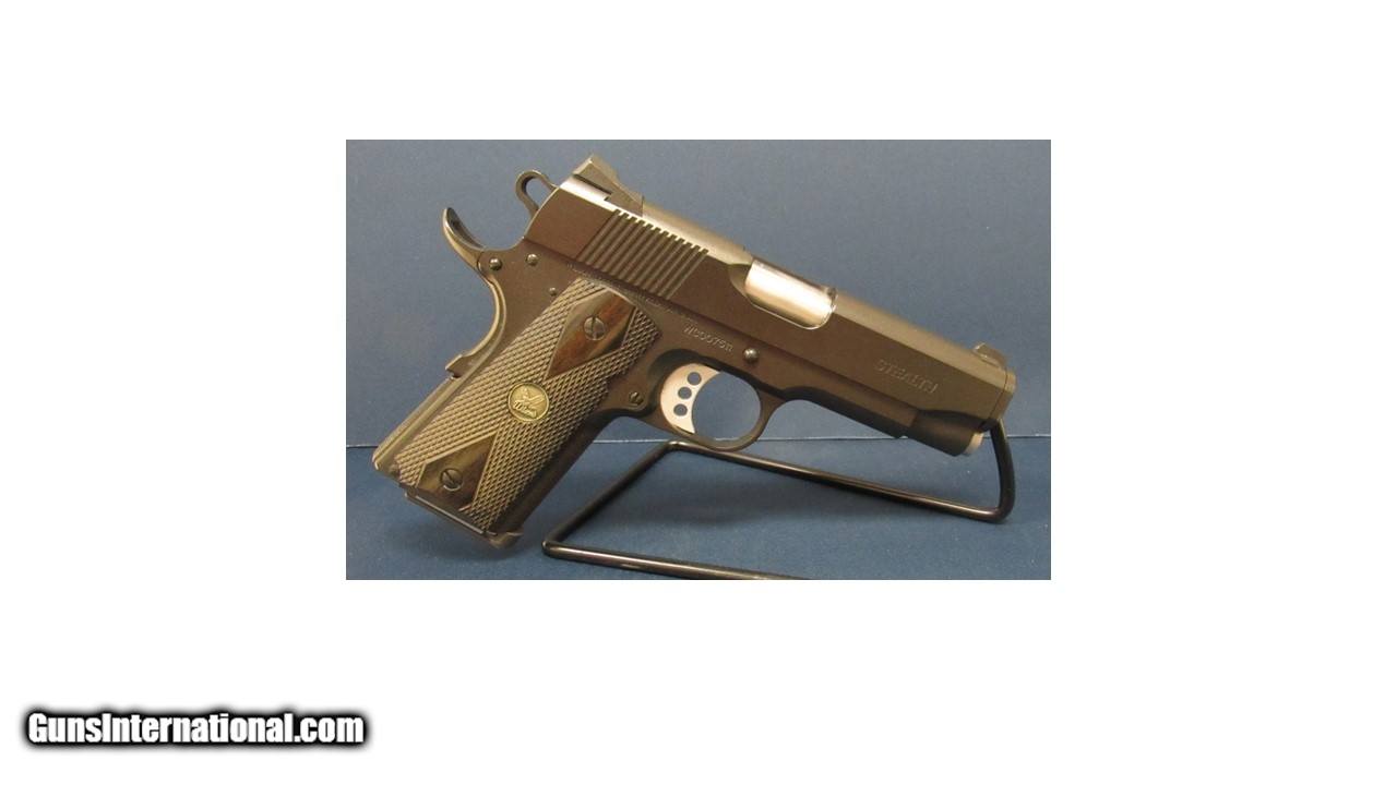 Description: Guns Listing ID: 525504 The Wilson Combat 1911 Stealth is a top-tier, commander-size all-metal 1911 pistol designed for performance and reliability in .45 ACP. Featuring a 4\" integrated-bushing-style bull-barrel, this all-black beauty ensures precision with every shot. Double-diamond checkered WC logo grips provide a secure hold, as original night sights enhance visibility in low-light conditions. This package includes six 7-round and one 8-round magazine, along with a Wilson Combat soft range bag for easy transport. Elevate your shooting experience with this exceptional firearm that combines craftsmanship and functionality. SOLD Manufacturer: WILSON COMBAT Model: Stealth Caliber Info: .45 ACP Condition: Used - Non-Certified Barrels: 4 Action: SEMI AUTOMATIC Finish: black |