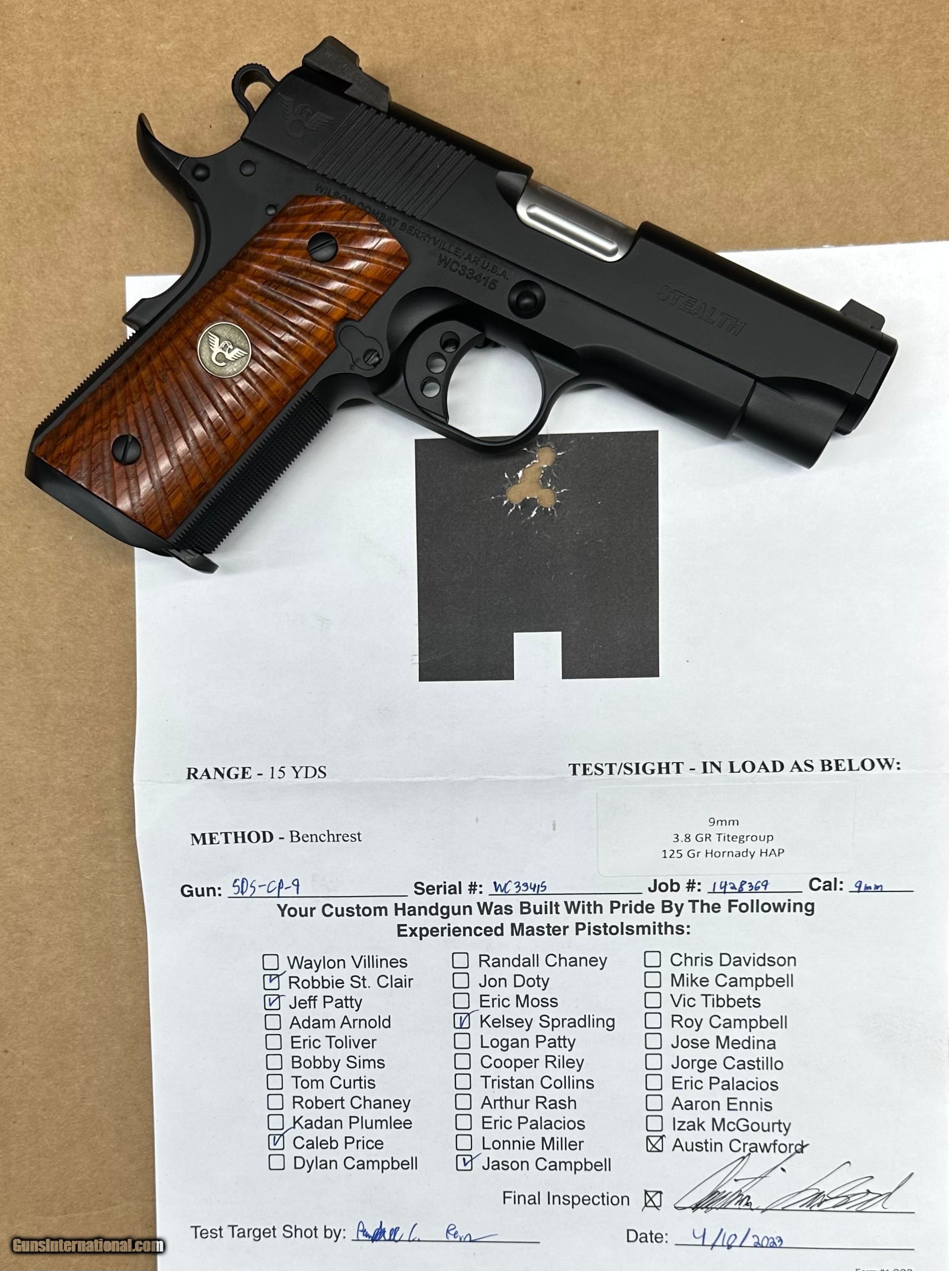Description: Wilson Combat Stealth Compact 9mm Cocobolo Grips Night Sights 1911 SDS-CP-9 - Factory New SOLD |