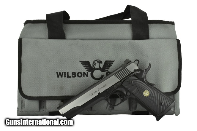 Description: Wilson Combat Tactical Elite .45 caliber pistol. 5” Tactical pistol with Lug barrel and 2-tone finish on the slide. Has a gold bead front sight and Magwell. Excellent condition with bag.