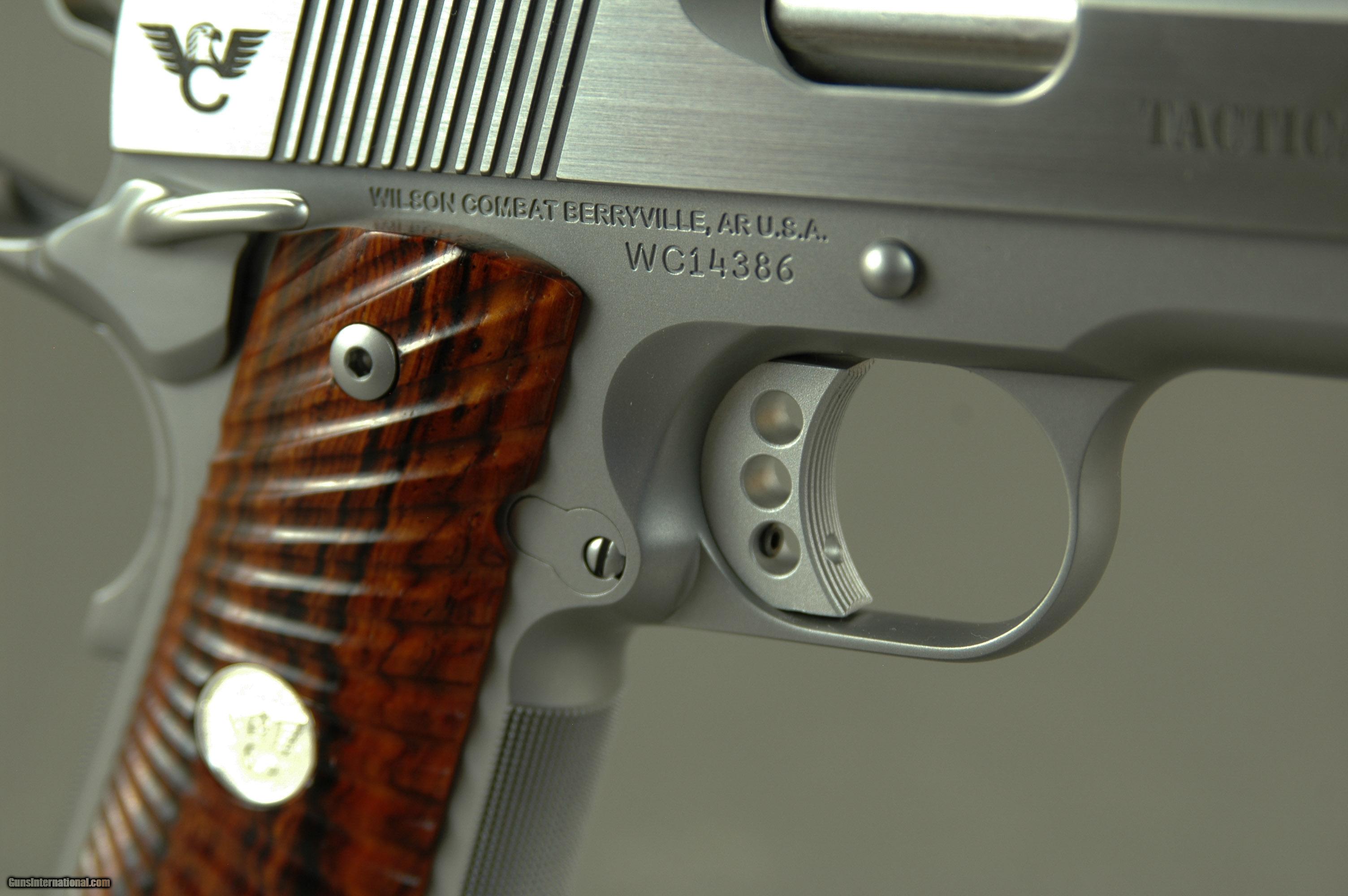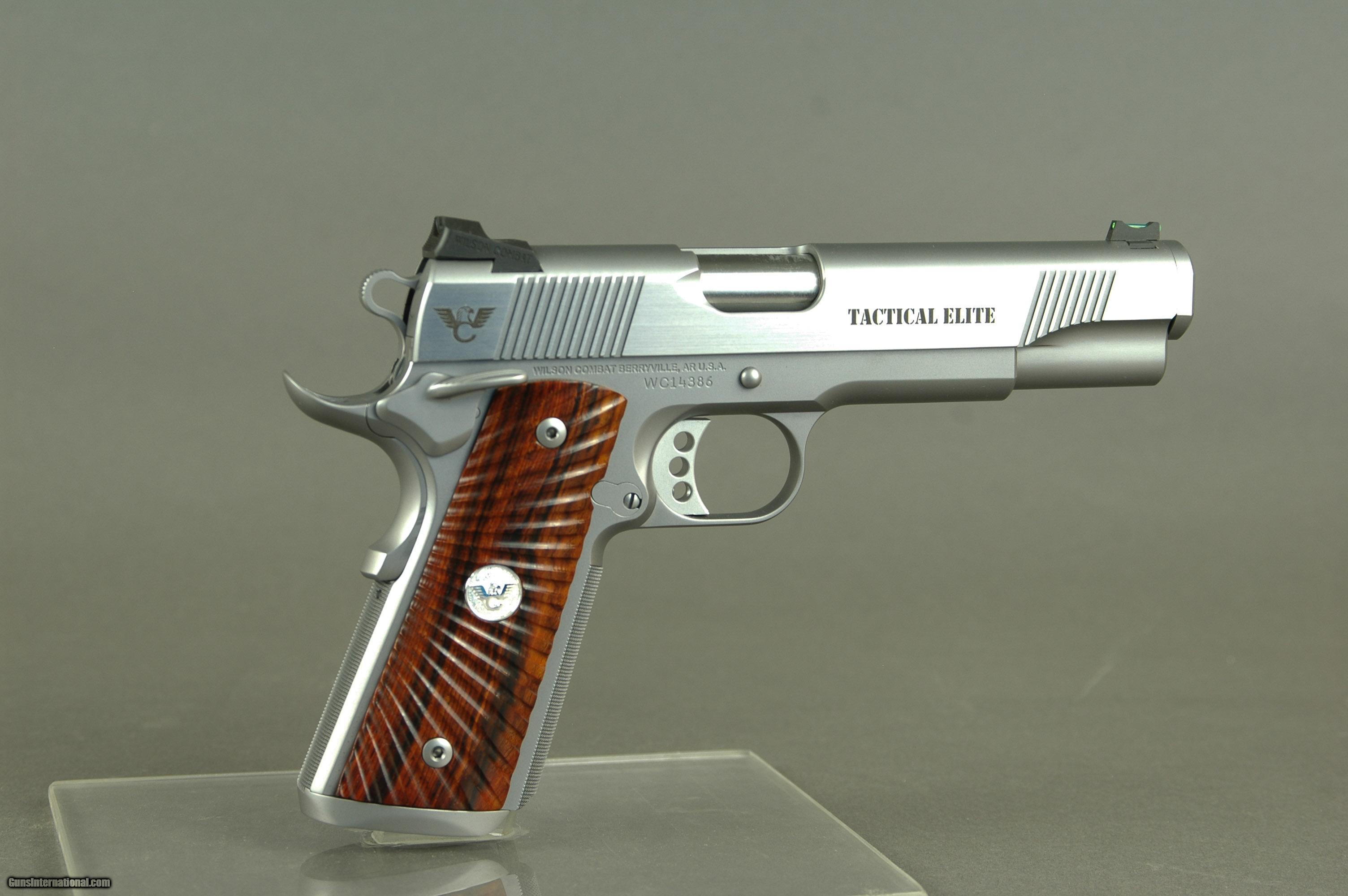 Description: Wilson Combat Tactical Elite 9MM Armor-Tuff Serial # WC12412 ~ACTUAL FIREARM PICTURED~ With all the combat proven features of a typical CQB, the Tactical Elite provides the additional advantage of a fully supported hand-fit, heavy flanged cone match grade barrel. The extra weight of the heavier-than-standard barrel gives the shooter softer recoil and faster recovery time between shots. Possibly the easiest pistol to shoot well in today's market, it is the highest performance self-defense pistol available. Specifications