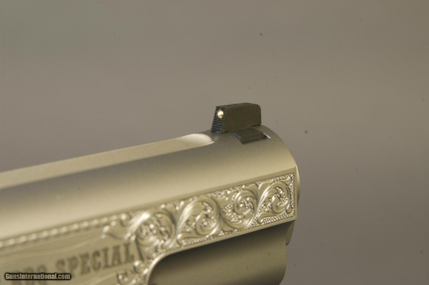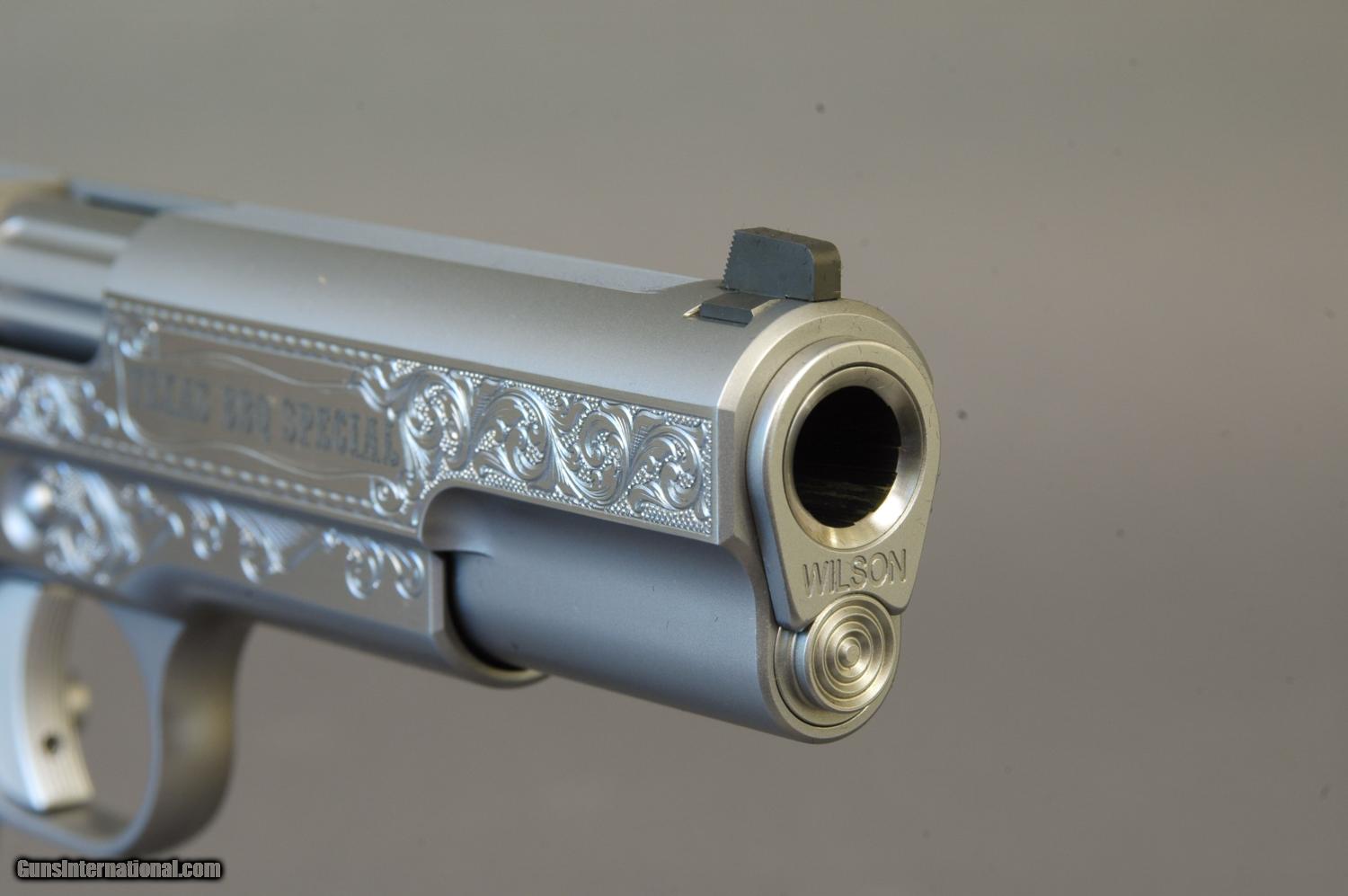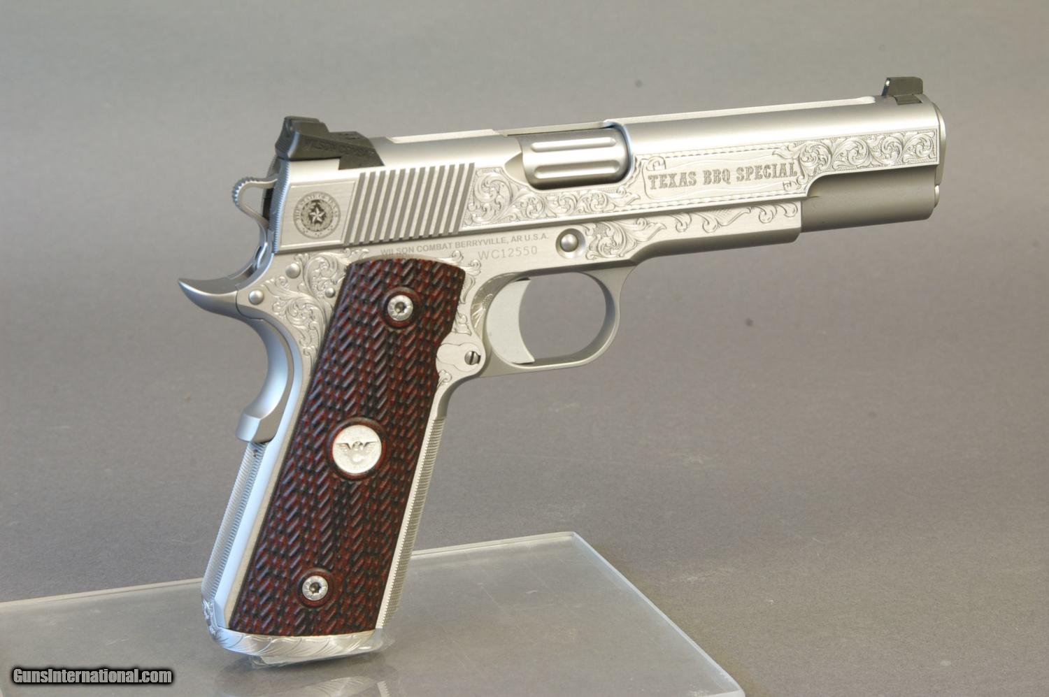 Description: Wilson Combat Texas BBQ Special 45ACP Serial # WC12550 ~ACTUAL FIREARM PICTURED~ **Level III Engraving** A fully dressed-up carry gun that is hand-engraved is almost always some version of a 1911 and is traditionally worn at special get-togethers and barbeques by gunmen across Texas. The Texas BBQ Special starts with Wilson's stainless forged and billet parts. All controls have been selected for everyday carry and hard use. This BBQ Special has Level III special hand-engraving from Master Engraver Wayne D'Angelo. The Wilson Combat Texas BBQ Special will be a special functional heirloom prized by generations for years to come. Not just for Texans, but for the Texan in all of us!!!! Specifications
