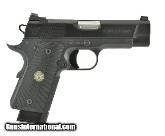 Description: Wilson Combat Ultra Light Carry .45 ACP caliber pistol. Premium carry pistol with 2-tone black and gray finish, night sights and top slide serrations. Excellent condition with bag and 3 extra magazines.