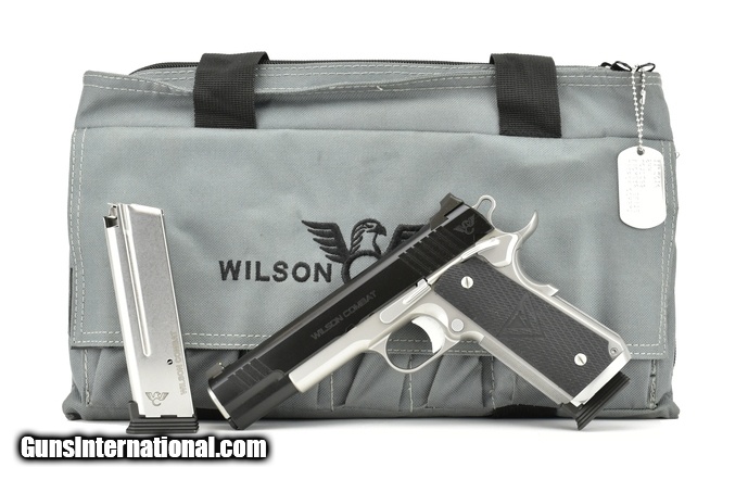 Description: Wilson Combat Vickers Elite 9mm caliber pistol. Two-tone Vicker Elite with black and stainless finish. Excellent condition. Gold bead front sight. Comes with bag and extra magazine.