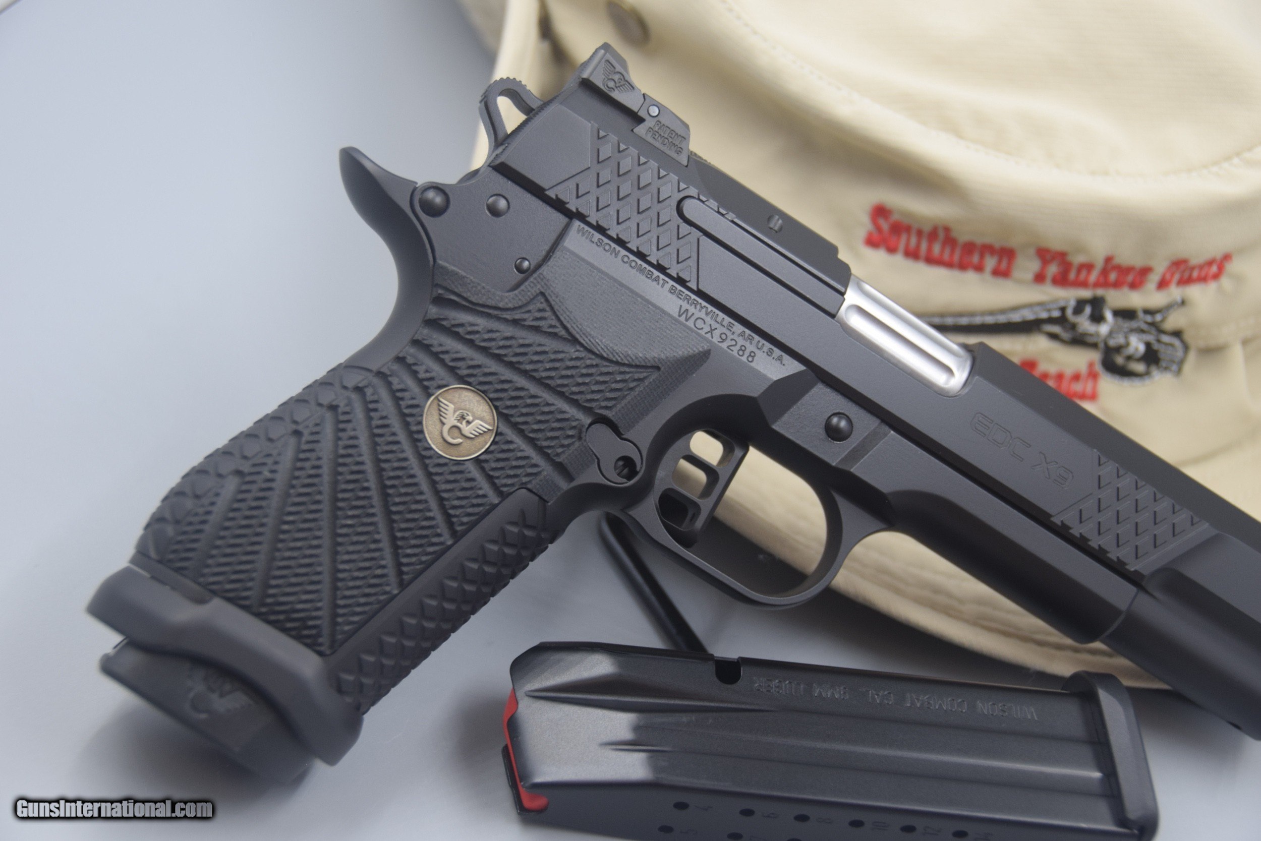 Description: Here's a MINT/fired 3 magazines full, WILSON COMBAT MODEL EDC X9-L (longslide) PISTOL IN 9 MM. This double-stack pistol has two magazines, an 18-rounder, and one for 15 rounds; AND a FLAT TRIGGER and MAG-WELL UPGRADES. All documentation is included, and it's being offered for ONLY $2599.95 SHIPPED, cash of credit card... SOLD |