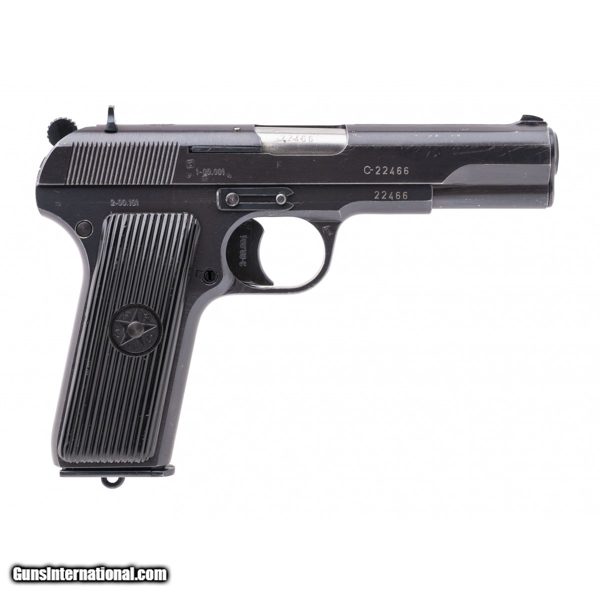 Description: " SN: C-22466. Manufactured 1960-1961. 7.62x25 with a 4.5"" barrel. Bore is bright with strong rifling. Yugoslavian service pistol with external safety and matching numbers. Finish is in good condition with handling wear noted, the Yugoslavian crest is noted on the top of the slide and an import mark on the left side. Grips are in very good condition. Pistol comes with a reproduction holster and an extra magazine. Overall very good condition. SOLD Curio/Relic: Yes |