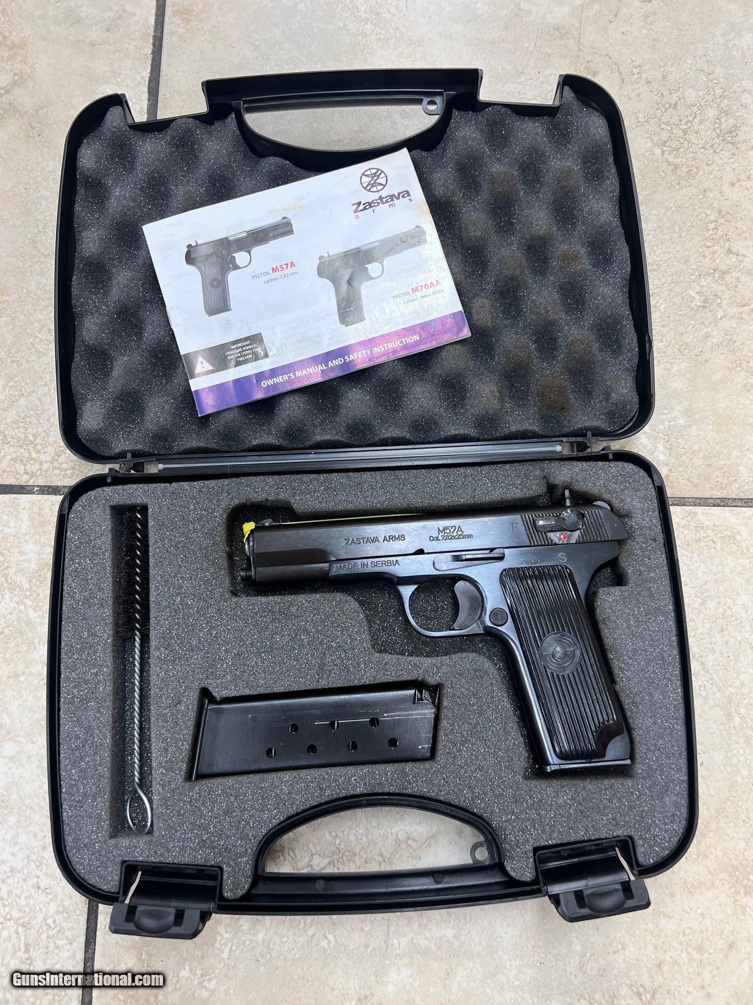 Description: Guns Listing ID: 487185 2 mags with original box SOLD Manufacturer: ZASTAVA ARMS Model: m57a Condition: Used - Non-Certified Barrels: 4.5 Gauge Info: 7.62x25mm Finish: blue steel |