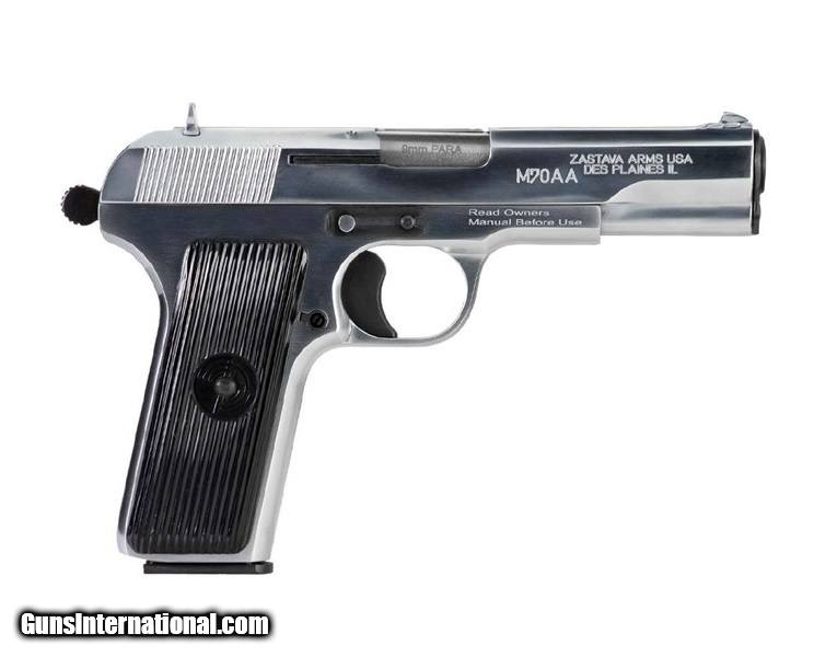 Description: Manufacturer: Zastava Arms Model: M70AA Semi-Automatic, Single Action SKU: H709CH Caliber: 9mm Barrel Length: 4.5" Capacity: (2) 9 Round Magazines Finish: Chrome Frame: Alloy Steel Grips: Black Polymer Weight: 27.2 oz Sights: Fixed These are New production Zastava Arms M70AA Pistols in 9mm, they are available in Blued or Chrome finish. Zastava Arms New production M70AA Pistols are available again in the USA, thanks to Zastava Arms USA! Pistol M70AA is an upgrade of basic model M70A. It has slide mounted external safety. The design of the pistol M70A is similar to design of Soviet pistol TT, & the model M57. This pistol identical to the M57A, except that it is chambered in 9mm. SOLD |
