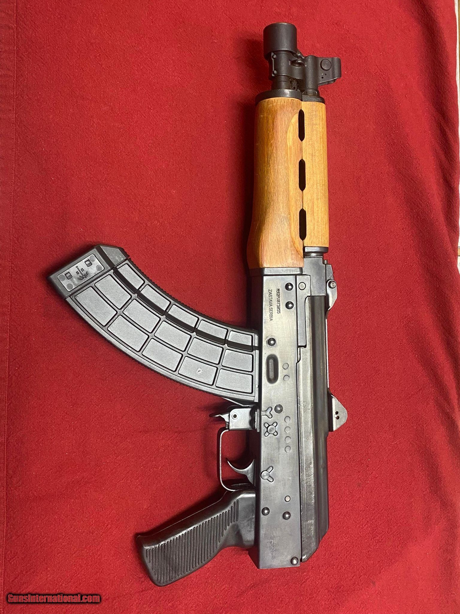 Description: Guns Listing ID: 677335 According to our rating scale I would Rate this gun \"VERY GOOD\". I have taken multiple pictures to show the condition of it. We want you to get the best impression of it. With the hopes when you get it, that it is better than what you thought. 100% working order. no iron sights Comes with gun and one mag. The bore I would rate 8.9 out of 10. If I had to rate the firearm in condition I would say 8.9 out of 10. (Please see my pictures for a better detailed idea), Please see all Photos for a very detailed Description of condition. We rate firearms using these condition standards, for modern firearms. NEW-A gun given a grade of \"new\" looks just as it did when it left the factory and has never been sold at a retail store. PERFECT-A “perfect” gun is literally as good as new, although it may have been sold in a retail store. EXCELLENT-An “excellent” rating means the gun appears to be in perfect condition but may have had minor use. VERY GOOD-A “very good” firearm is perfect mechanically but may have minor cosmetic blemishes. GOOD-A rating of “good” indicates that the gun is in proper working condition but may show signs of wear. FAIR-A “fair” firearm may or may not be in safe working order. It has not been test fired, only visually inspected. It may need repair or maintenance. UNRATED-Unrated condition means this firearm has not been test fired, it may function perfectly or it may be in need of repair. Cosmetically it may be in very good to fair condition. You will need to look at the pictures and ask questions. SOLD Manufacturer: ZASTAVA Model: PAP M92PV Caliber Info: 7.62 X 39 MM Condition: Used - Non-Certified Barrels: 9.5 BARREL Finish: BLACK |