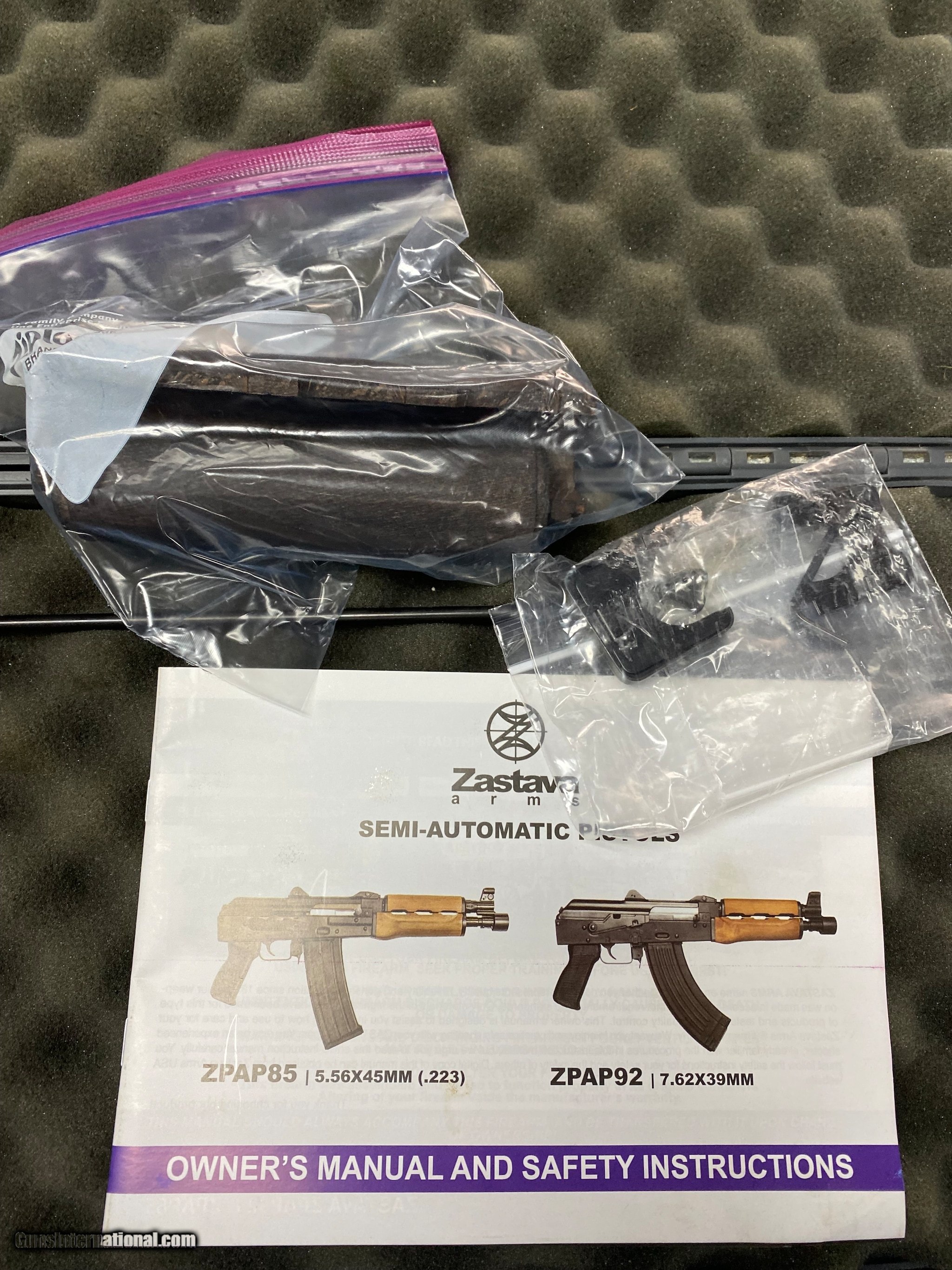 Description: Guns Listing ID: 438657 Zastava in Excellent Condition Zastava, ZPAP92, Semi-automatic, AK Pistol, 7.62X39, 10\" Chrome Lined Barrel, Blued, Polymer Grip, ZASTAVA TACTICAL HANDGUARD INSTALLED & Wood Handguard in case, 1 30rnd Magazine, Bulged Trunnion, Booster Muzzle Device, Hinged Top Cover, Optics Rail, 1.5MM Receiver Hard Case SOLD Manufacturer: ZASTAVA Model: ZPAP92 Caliber Info: 7.62 X 39 MM Condition: Used - Non-Certified Barrels: 10" barrel Finish: BLACK |