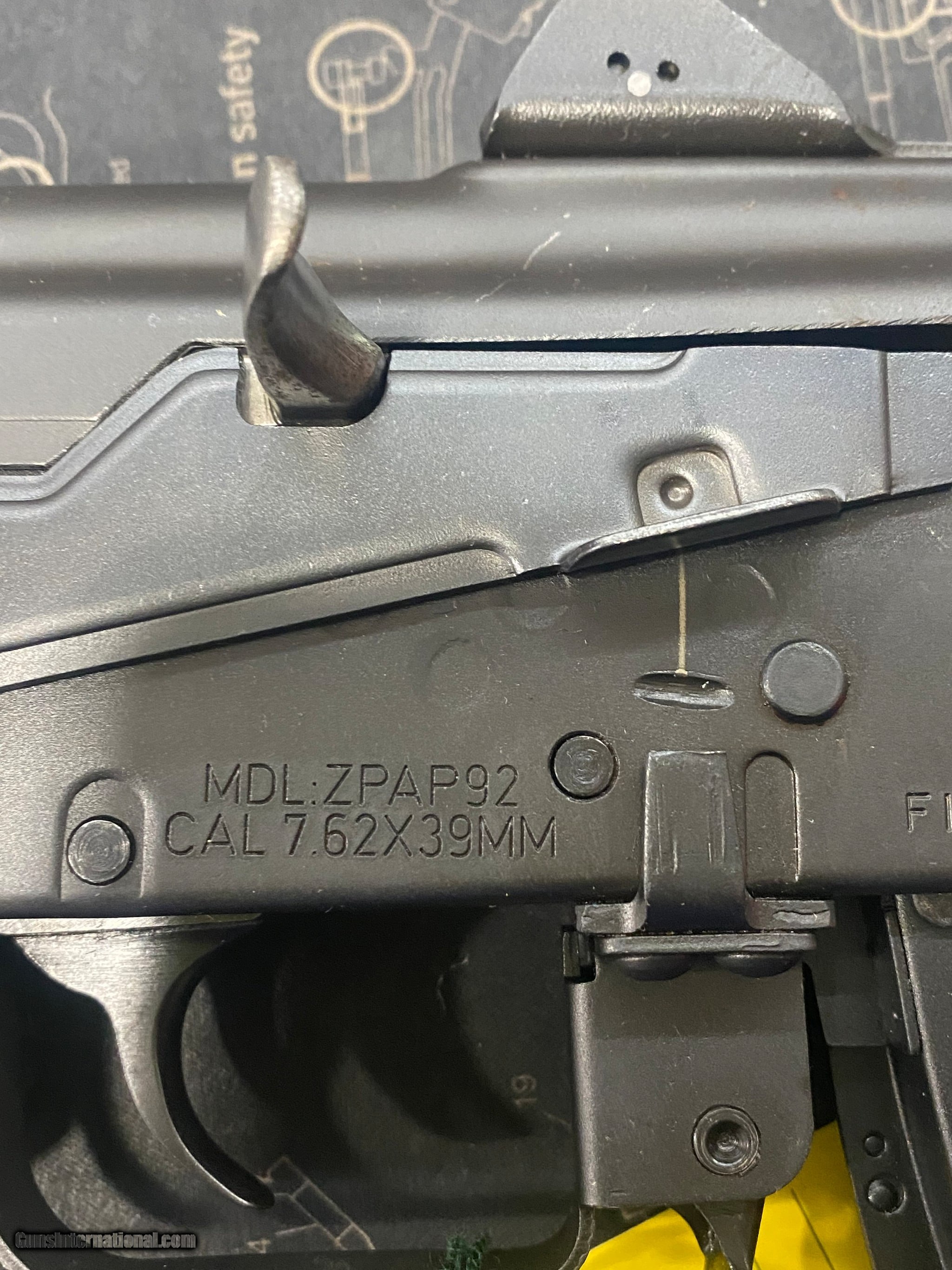 Description: Guns Listing ID: 518103 In original box w/ 1 magazine. SOLD Manufacturer: ZASTAVA Model: ZPAP92 Caliber Info: 7.62 X 39 MM Condition: Used - Non-Certified Barrels: 10" barrel Finish: BLACK |