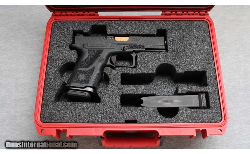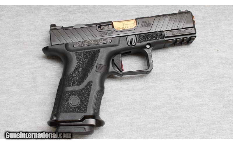 Description: Appears as new, comes with 2 mags and hard case. 9mm Semi auto pistol, 4" bronze barrel, red fiber optic front, black rear sights, front and rear slide serrations, accessory rail for a light or laser, textured grip surfaces and Zev factory magwell. A great choice for concealed carry or for home defense. The OZ9c X was designed and created for balance. Balance equates to what every shooter is looking for, a more controllable pistol with less felt recoil, less muzzle flip and faster, more accurate follow-up shots. At the heart of the OZ9c X is a patented steel receiver. This solid steel frame runs the length of the entire pistol allowing the locking block to be fully integrated. The extended rails in the receiver help provide more than double the surface area of contact to the slide. 9mm Luger SOLD Chambers: Semi auto Metal Condition: As new Bore Condition: Bright Barrels: 4 Triggers: Factory striker Fore End: Rail for accessory mounting Butt Pad: Polymer grip Sights: "Red fiber optic front, black rear sights Item Location: La Vista, NE |