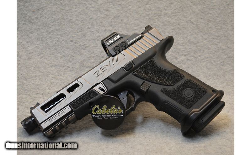 Description: This Zev Technologies Model 0Z9C is a right hand semi-auto pistol chambered in 9 mm. It has a 4.25 inch barrel with a rear serrated slide. A red high visibility front sight and a Holosun red dot sight. The grip is a textured black polymer with finger groove. This pistol does feature lower accessory rail and flared magazine well. Additionally, this pistol comes with its original hard case and one extra magazine, as pictured. There is a small chip on the trigger guard on the right side. No noticeable handling marks, this pistol is in exceptional condition. 9mm Luger SOLD Barrels: 4.5 inches Item Location: Hazelwood, MO |