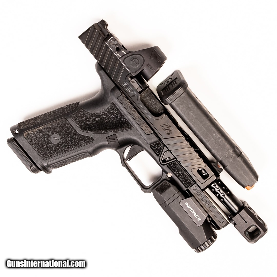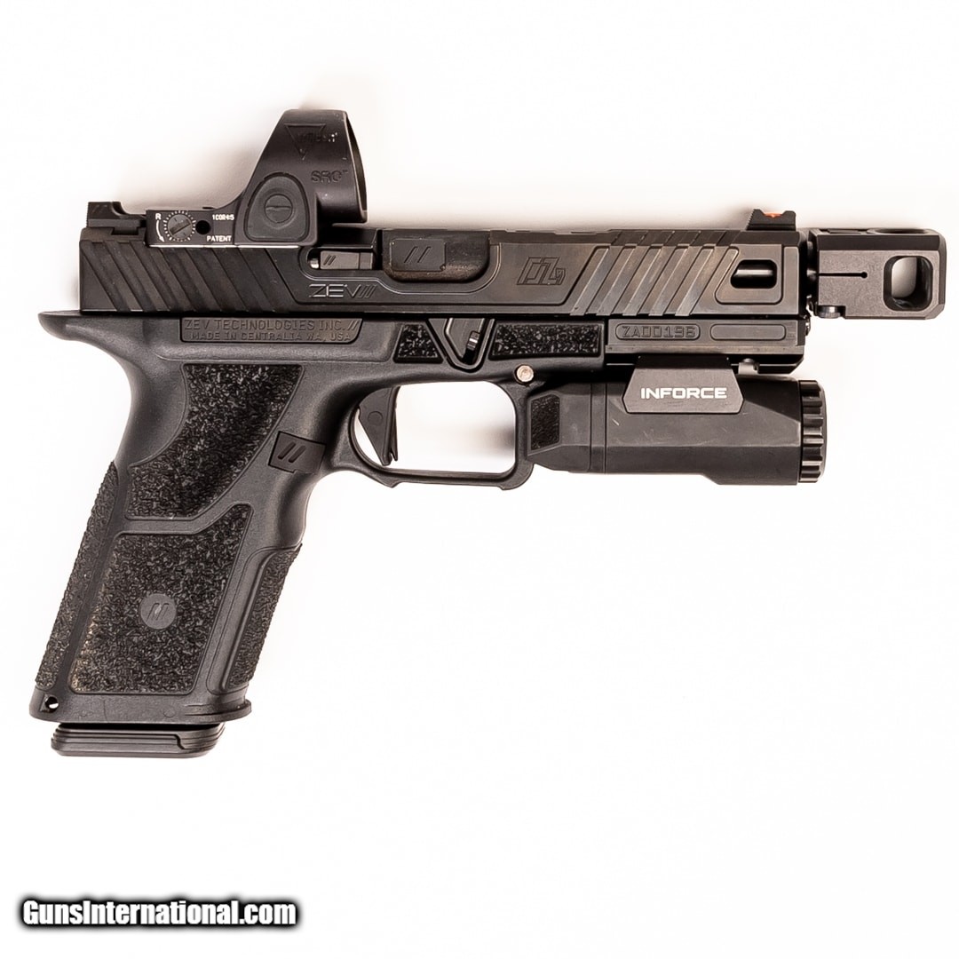 Description: Guns Listing ID: 408472 The Zev Technologies OZ9 Standard is a full-size hot-rod handgun like no other. Custom built from the ground up and patterned off Glock‚‚s signature style and performance, this is a phenomenal pistol that is perfect for competition use. It‚‚s tricked out with a Trijicon SRO, a ZEV compensator, an Inforce light (with no batteries), a Zev Pro V2 flat face trigger bar, and a Zev Mag release. The handgun includes two 17-round magazines and the original case with the manual and a watertight ba SOLD Manufacturer: ZEV TECHNOLOGIES INC. Model: OZ9 Caliber Info: 9MM LUGER (9X19 PARA) Condition: Used - Certified Barrels: 4.7 BARREL Finish: BLACK |