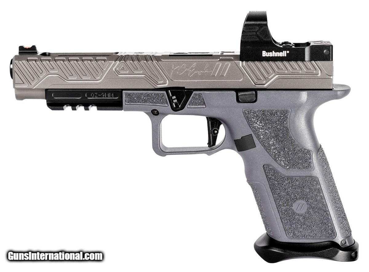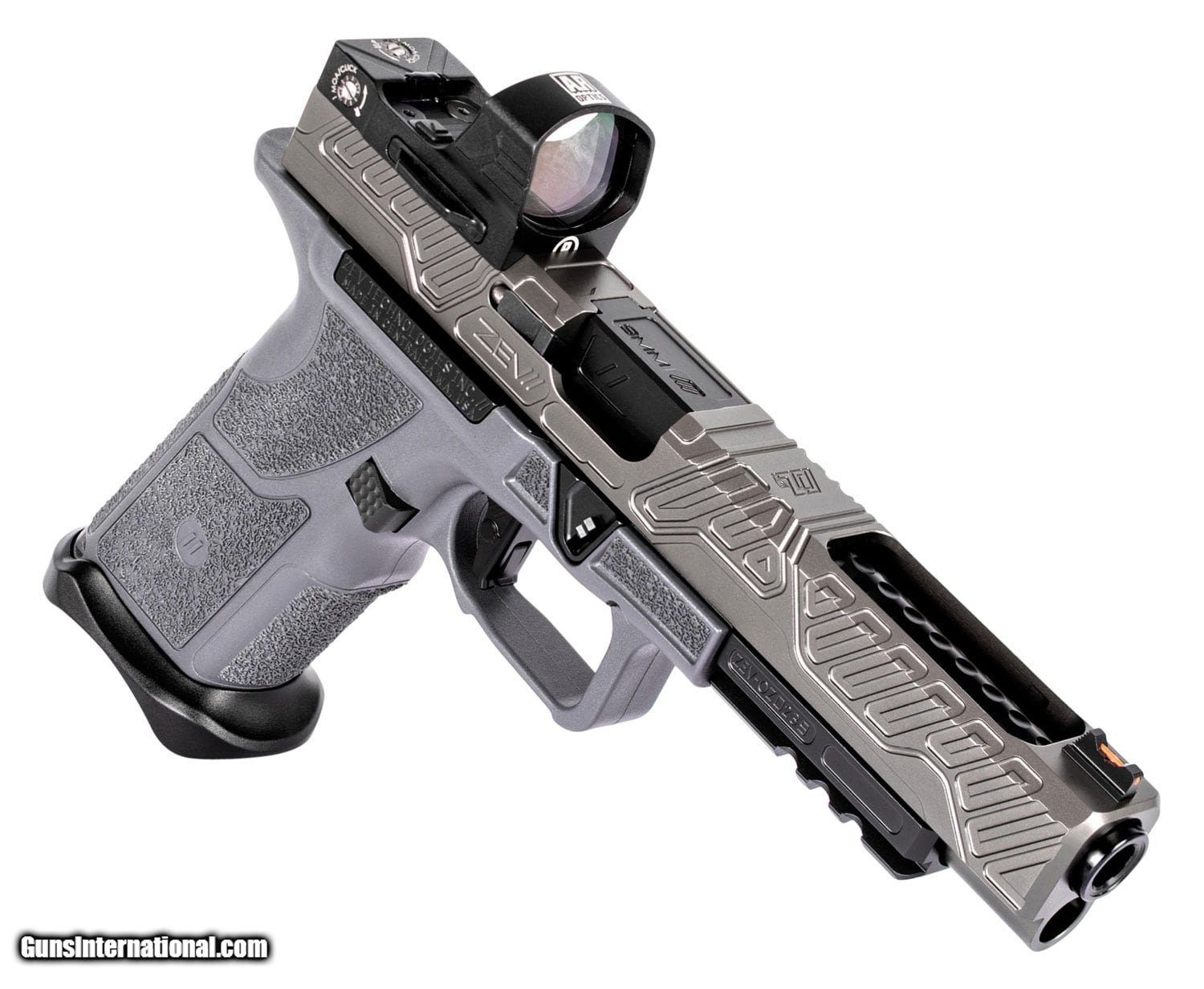 Description: Guns Listing ID: 769199 The Competition Model O.Z-9 features an exclusive KC Signature G34 length slide, coated titanium gray and cut for a Bushnell First Strike 2.0 optic. At the heart of the O.Z-9 is Zev‚‚s pat. pending steel receiver. This solid steel frame runs the length of the entire pistol allowing the locking block to be fully integrated. The extended rails in the steel receiver help provide more than double the surface area of contact to the slide. Additional benefits include channels that clear out debris while also acting as lubricating reservoirs for high friction areas. The O.Z-9 is compatible with ZEV components and accepts GLOCK mags, and will include future grip sizes, color, and texture options. It also features a ZEV match grade barrel, ZEV PRO flat face trigger, and includes a custom SKB case and 2 Magpul PMAG 17 GL9 SOLD Manufacturer: ZEV TECHNOLOGIES Model: OZ9 COMPETITION Caliber Info: 9MM LUGER (9X19 PARA) Condition: new Barrels: 5 BARREL |