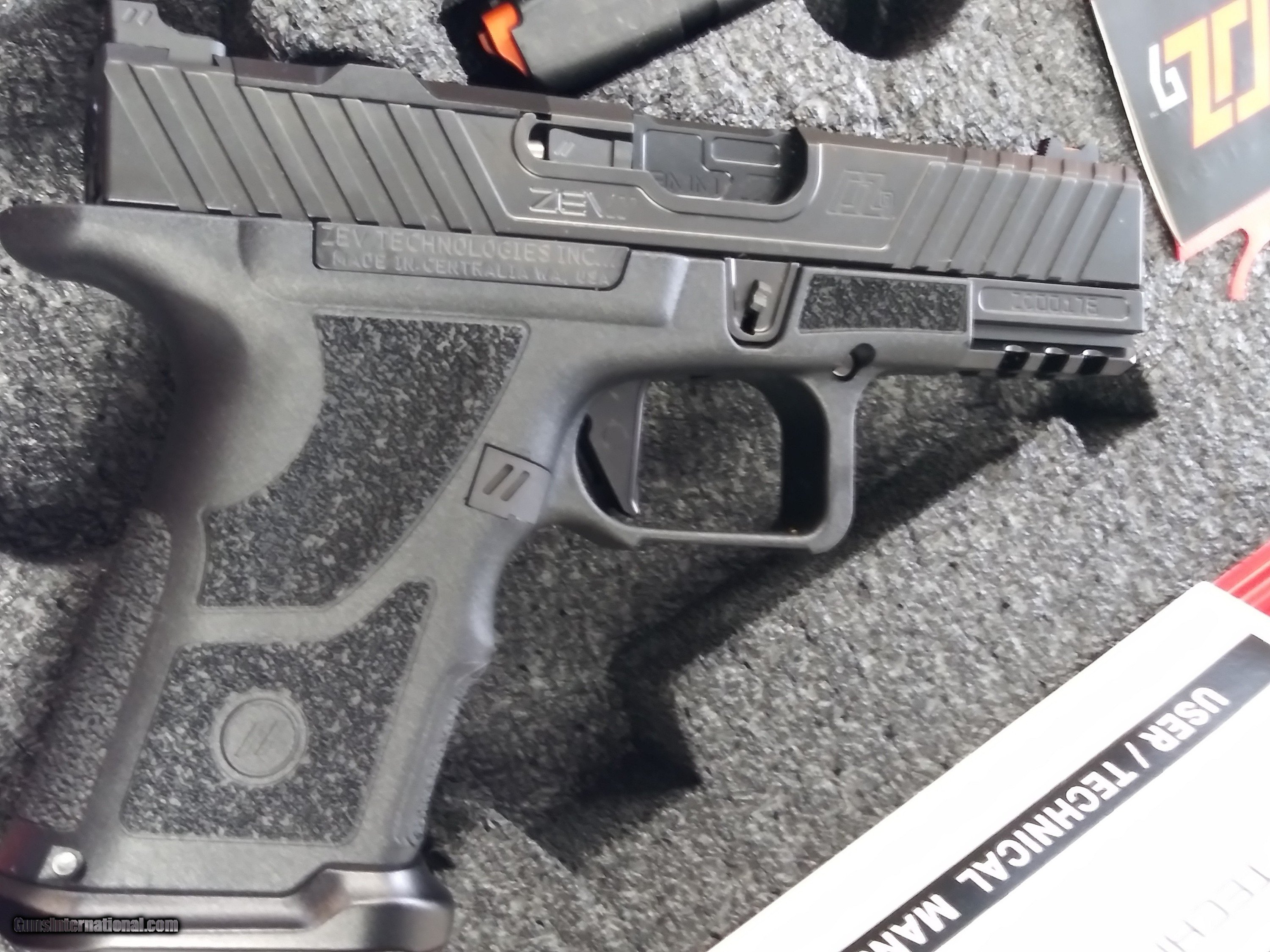 Description: ZEV Technologies, model OZ9C, compact 9mm. 3-15 round Magpul magazines. Pelican case, manual, and extra springs, as shown. NEW IN BOX. $1550 includes shipping to FFL Only. SOLD Manufacturer: ZEV TECHNOLOGIES Model: OZ9-C Caliber Info: 9 mm |