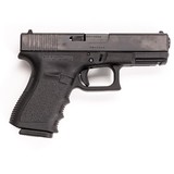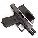 This is a Glock 19 Gen 3 which features finger grooves and an accessory rail. It is one of the most common handguns in the United States and is an excellent general-purpose sidearm.