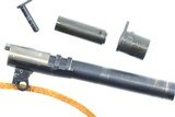 Standard configuration 1911A1 manufactured by Ithaca in 1943, the left side of the slide marked with the usual two-line Ithaca address and "P" on top. The left side of the frame has the "FJA" inspection mark and "P" below the magazine release. The model designation, the SN, and U.S. Army markings on the right side of the frame. The top of the chamber has been polished and the lug is marked with an "F" and "P". It is fitted with blade and notch sights, serrated slide release, thumb safety, narrow serrated hammer, short grip safety, stamped trigger, and checkered Keyes Fiber grips. Correct blued magazine marked with an "S" on the toe. Complete with a U.S. Milwaukee Saddlery Co. "1942" dated holster. Synopsis: Attractive Ithaca 1911A1 pistol, US Military, WWII, Holster, 1456959, A-1815 Condition: Near excellent, original parkerized finish with sharp edge wear, minor thinning, and discolorations reflecting its history of service. Top of chamber polished as previously noted. Near excellent grips and magazine. Bright bore with sharp rifling. Perfect manual mechanics. Comparable condition holster. A nice WWII rig that would compliment any martial arms collection. ~~Insured shipping fee of $75; most packages shipped using FedEx 2nd Day.~~